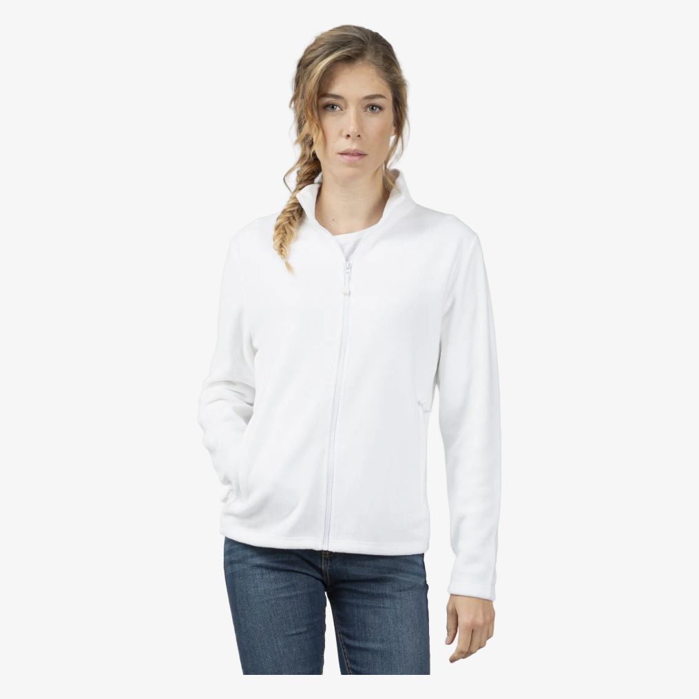 La veste polaire femme zippée comprend un zip principal et deux poches latérales avec fermeture zippée contrastée. Elle est conçue en micropolaire antiboulochage 100% polyester.