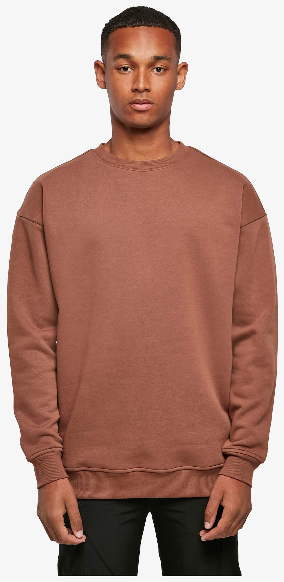 Le sweat Crewneck est conçu avec une composition de 65% coton et 35% polyester. Il dispose d'une étiquette taille sans marque, d'une épaule étendue et d'une demi-lune dans la nuque. La coupe est normale avec une bande de propreté et des poignets côtelés à l’ourlet.