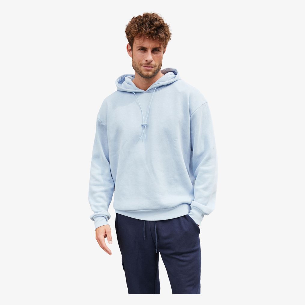 Le sweat à capuche Men's Lounge Hoody combine coton biologique peigné et polyester pour un tissu résistant et confortable. Il présente une coupe légèrement surdimensionnée avec un intérieur gratté pour plus de douceur. La capuche à double épaisseur est équipée d'un cordon de serrage avec stoppeur. Les poignets contiennent de l'élasthanne. Étiquette détachable.