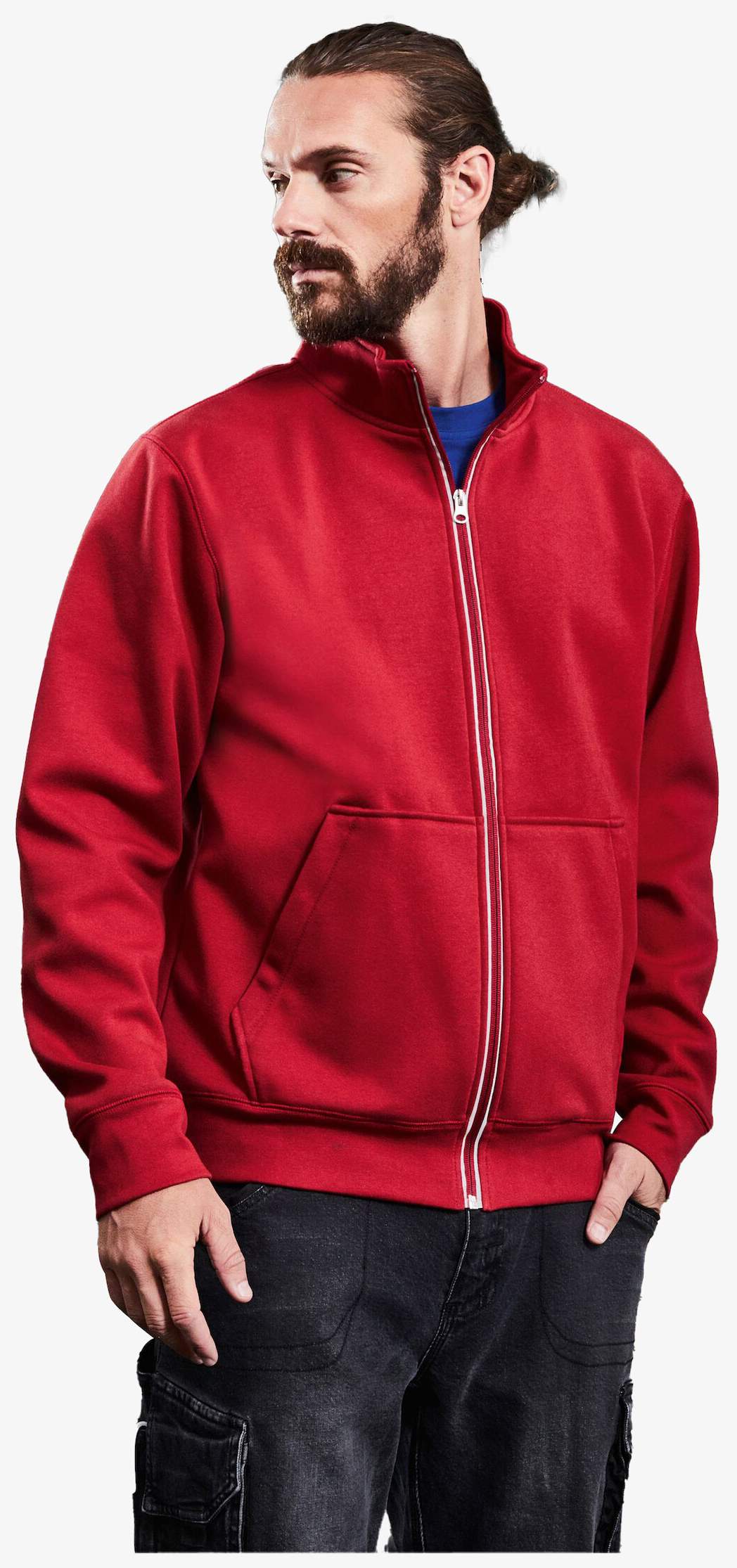 La veste avec col montant et poche kangourou est conçue en matériau double couche qui associe un extérieur en jersey coton simple et un intérieur en polaire. La fermeture zippée réfléchissante se trouve sur le devant sans fonction de protection. La poche kangourou dispose d'une fermeture invisible. Le liseré contient de l'élasthanne.