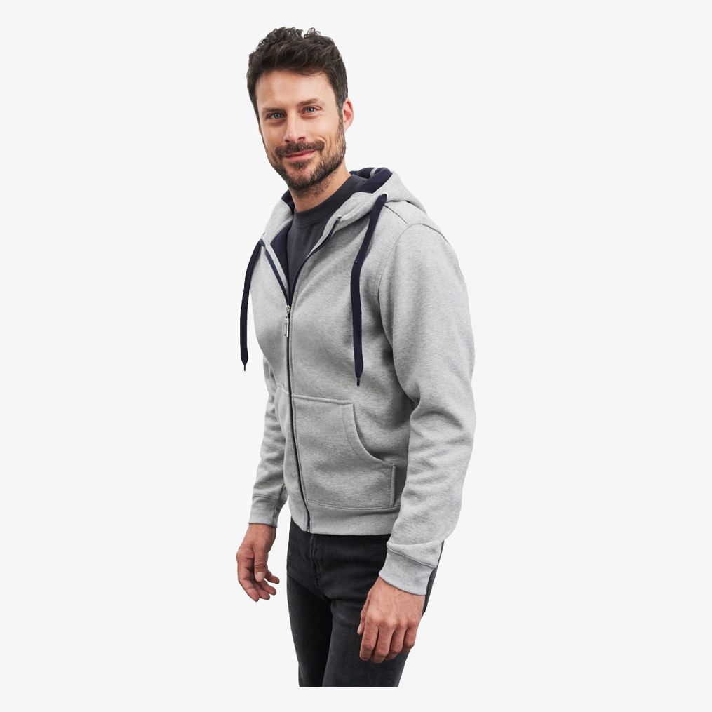 La Men's Doubleface Jacket est un sweat à capuche avec fermeture intégrale et cordon de serrage intérieur. La capuche dispose d'un cache col et une poche kangourou complète le modèle. Les poignets sont en bord côte avec élasthanne.