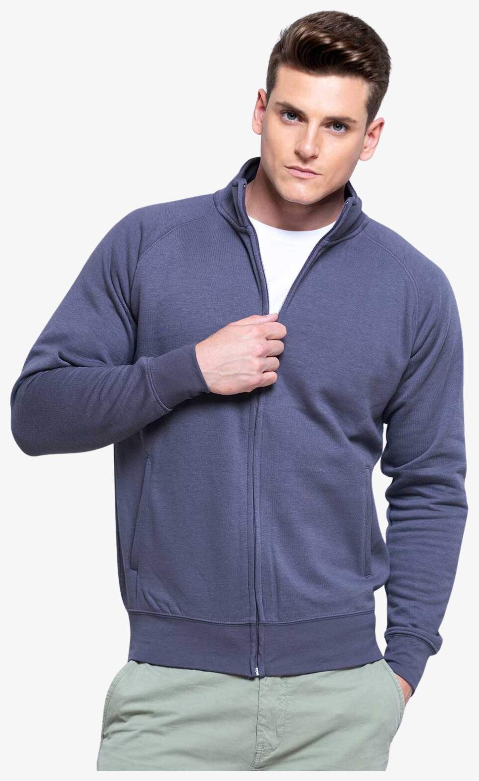 Sweat grand zip. Grand zip. Poches latérales. Bords côtes manches et taille en lycra côte 1x1. Col montant. Manches raglan. Composition : 65% polyester/35% coton Grammage : 290g/m²