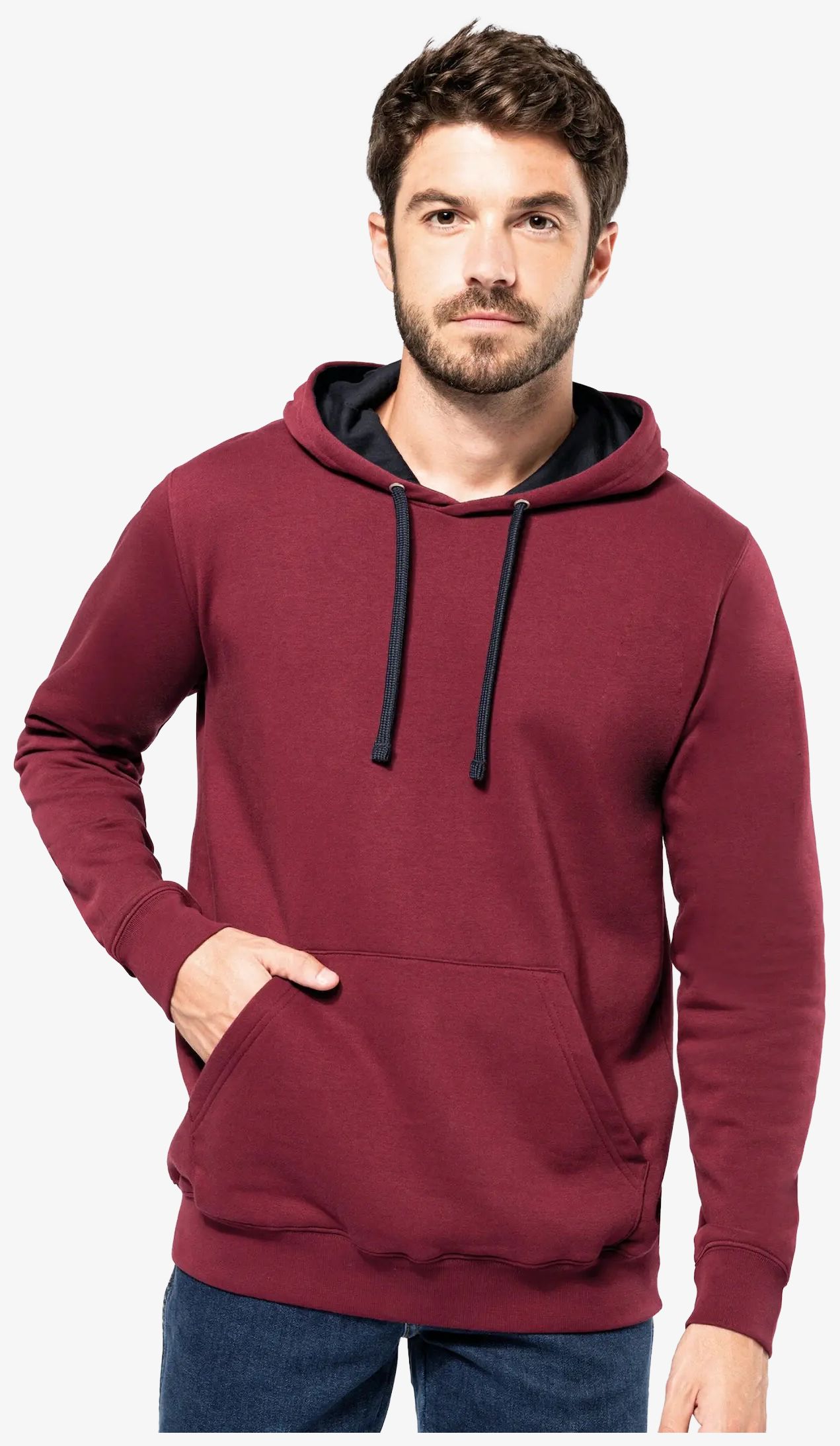 Le Sweat à capuche bicolore convient pour un usage quotidien, avec molleton gratté, capuche doublée contrastée, poche kangourou et cordon de serrage. Finitions en bords côtes aux poignets et au bas.