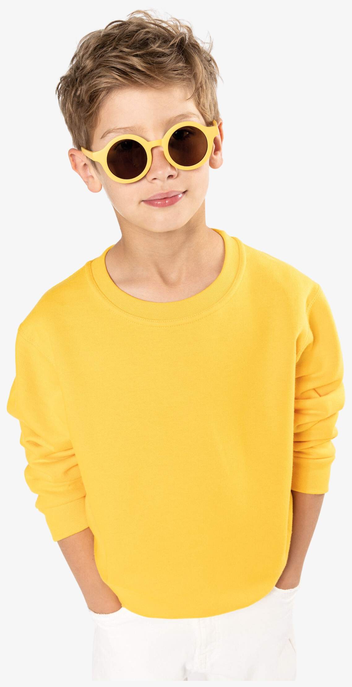 Le sweat-shirt col rond enfant est conçu en molleton gratté composé de 80% coton et 20% polyester. Il dispose de manches montées et d'une coupe tubulaire. La finition comprend un bord-côte à l'encolure, au bas des manches et au vêtement.