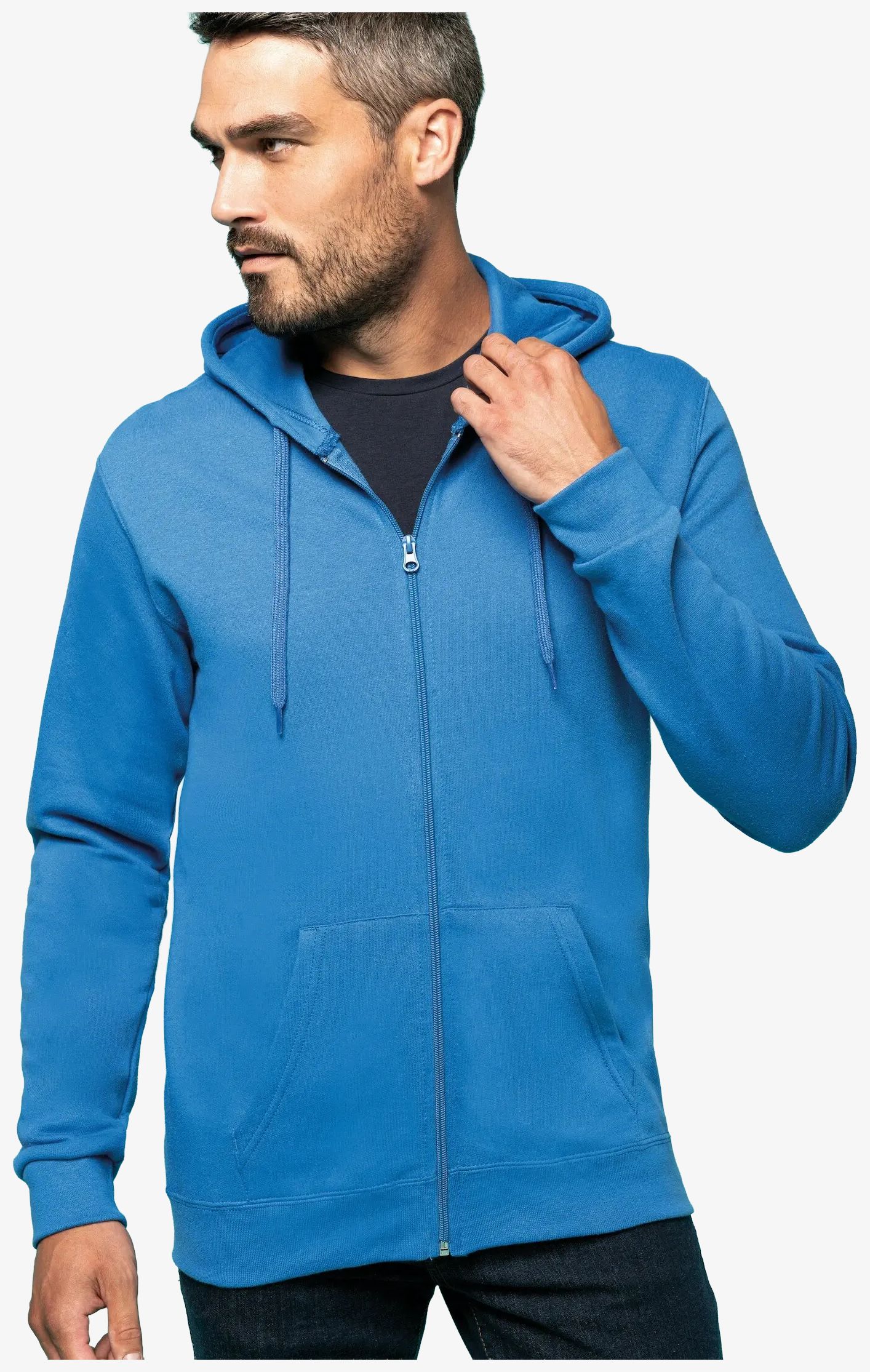 Le sweat-shirt zippé capuche est confectionné en molleton gratté composé de 80% coton et 20% polyester. Il dispose d'une fermeture zippée nylon et d'une capuche doublée avec cordon de serrage ton sur ton. Les manches montées et la coupe tubulaire apportent une structure simple.