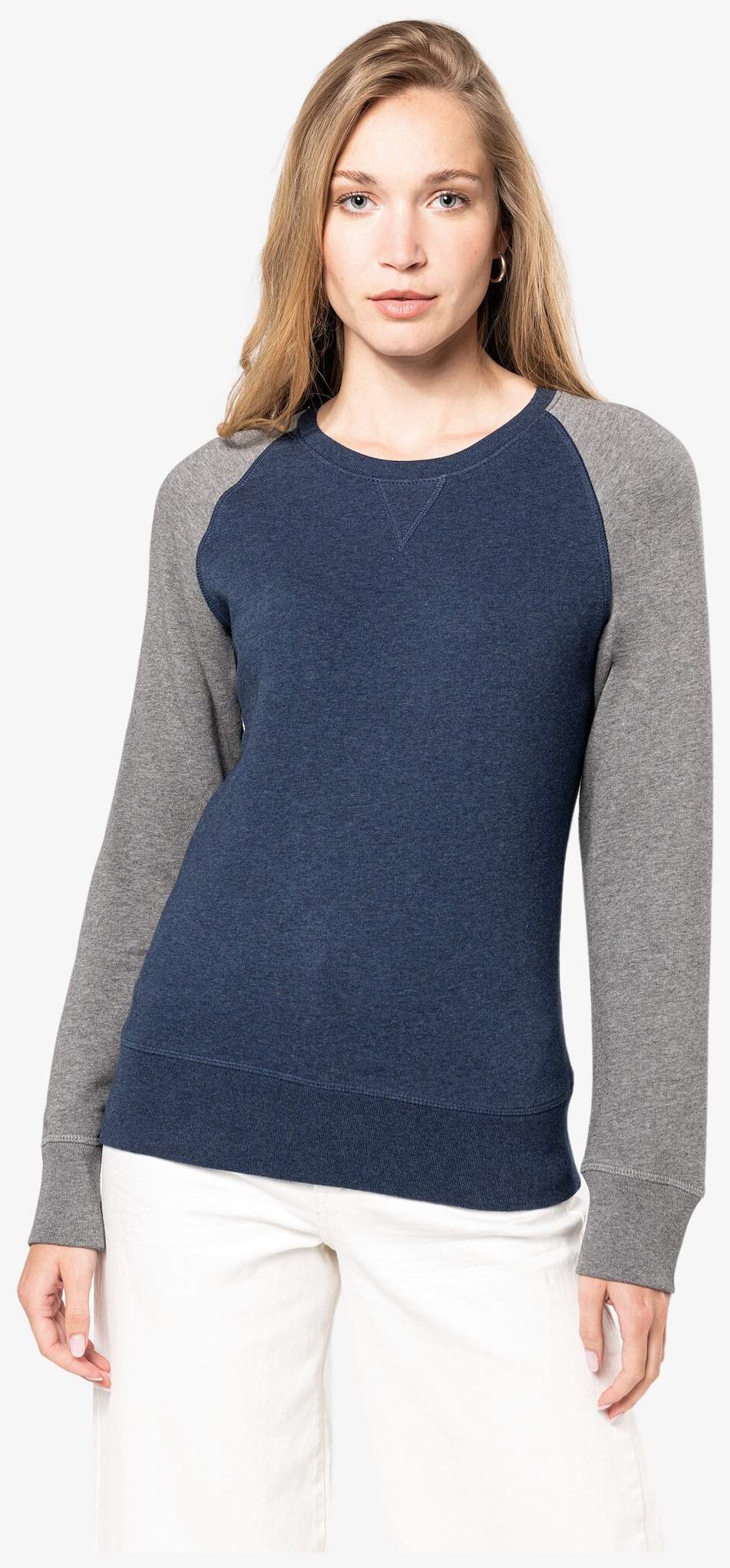 80% coton biologique / 20% polyester OCS Blended contrôlé par Ecocert Greenlife. Molleton non gratté (French Terry). LST (Low Shrinkage Terry). Bord-côte col, poignet et bas de vêtement. Bande de propreté chevron intérieur col et application en V à l'encolure. Pas d'étiquette de marque au col, uniquement une puce de taille pour faciliter la personnalisation. Grammage : 300g/m²