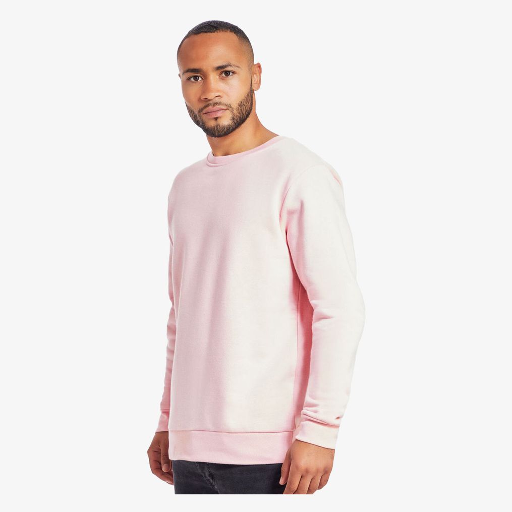 Le sweatshirt unicolore combine coton biologique et polyester recyclé avec une polaire brossée. Il présente un col rond, des manches longues raglan, ainsi que des finitions côtelées au col, poignets et ourlet inférieur. Une boucle de suspension est intégrée au col.