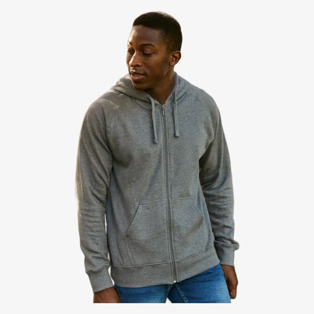 Le sweat à capuche avec zip assorti est conçu en coton biologique peigné certifié commerce équitable. Il comprend un dos molleton brossé, une capuche doublée et une poche kangourou. Les manches sont dotées de côtes élasthanne avec cordon plat.