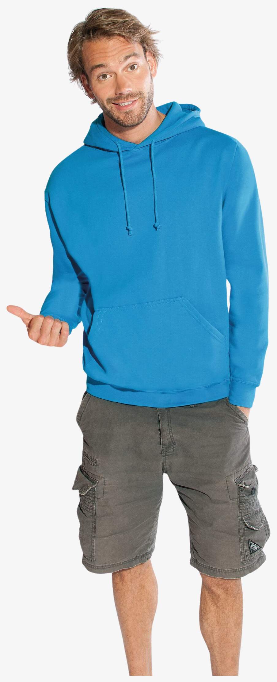 Le Men's Hoody est un sweat à capuche doté d'une poche kangourou à l'avant. La présence d'élasthanne dans les poignets et la taille apporte une certaine élasticité. Le molleton est brossé et composé de 80% coton et 20% polyester.