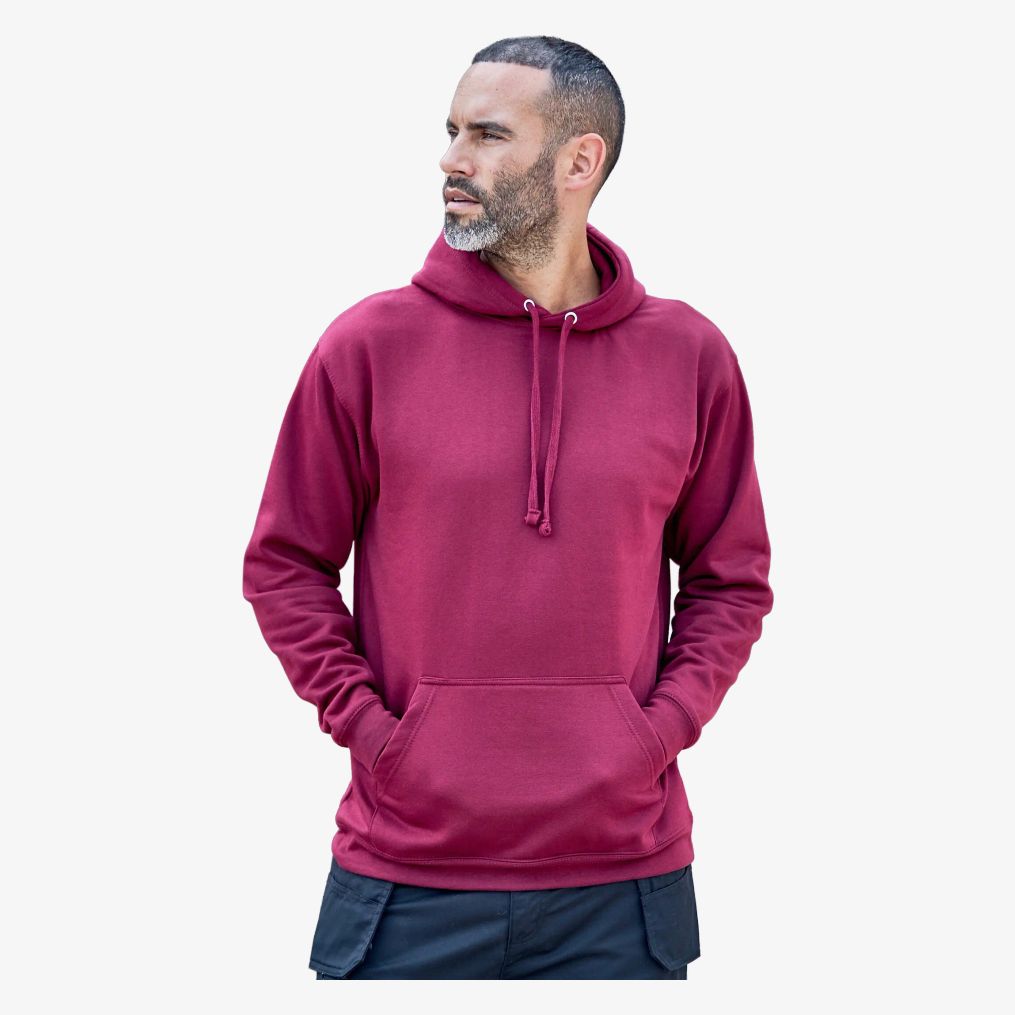 Le Pro Hoodie est conçu avec une capuche entièrement doublée et des cordons de serrage ajustables de même couleur. Il intègre une poche kangourou ainsi que des poignets et bord inférieur côtelés. Les coutures à surpiqûres doubles renforcent la solidité et la durabilité. La coupe est moderne et confortable.