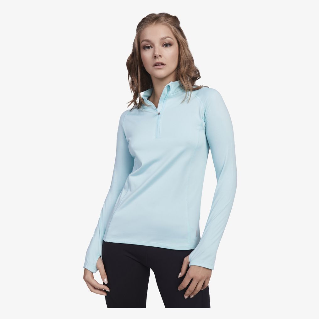 Le sweat à manches longues raglan pour femme comprend une doublure tricot moelleux et une demi-fermeture zippée inversée assortie avec finitions haute visibilité. L'ouverture pour le pouce est intégrée dans les poignets. Les coutures sont renforcées et couvertes au col.