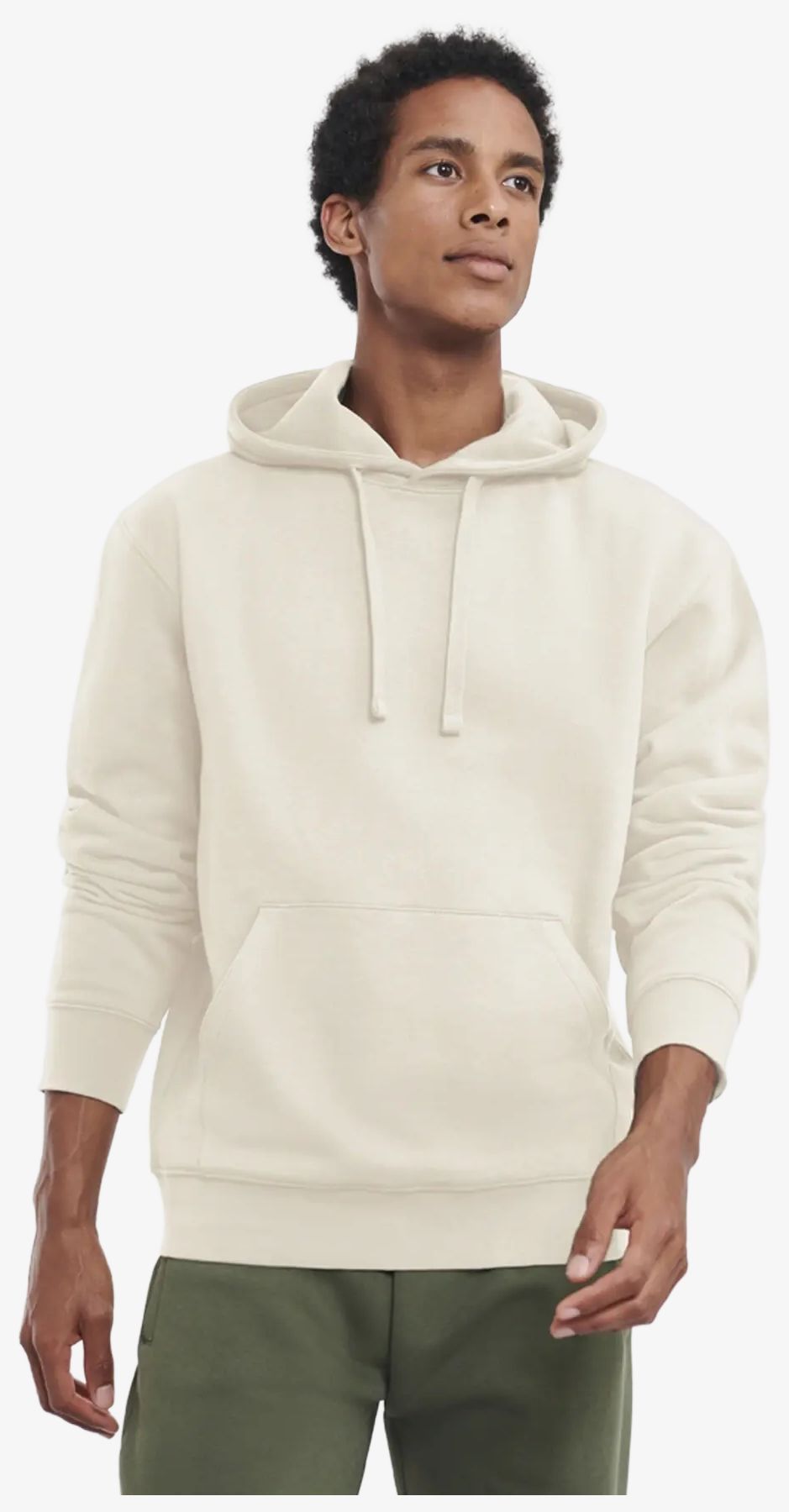 Le sweat à capuche pour homme présente une coupe contemporaine étroite. La capuche est doublée avec un cordon plat épais et œillets, le col dispose d'un bord plus large. Il inclut une poche appliquée avec accès pour écouteurs, des emmanchures et poignets surfilés. La bande de propreté est en chevrons.