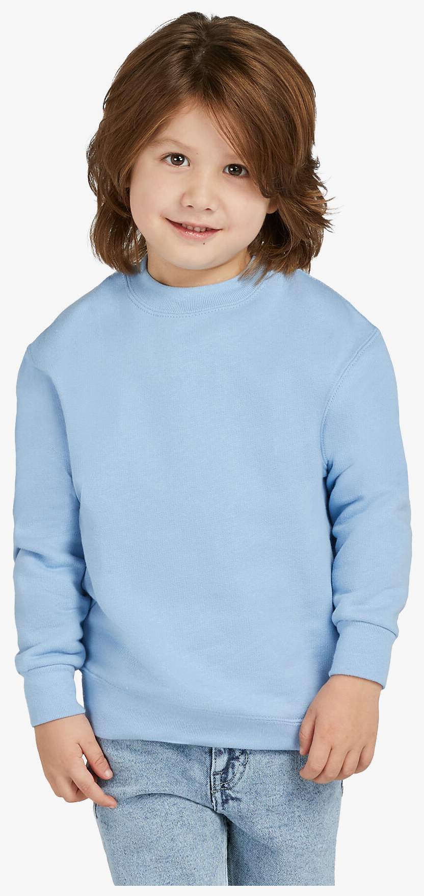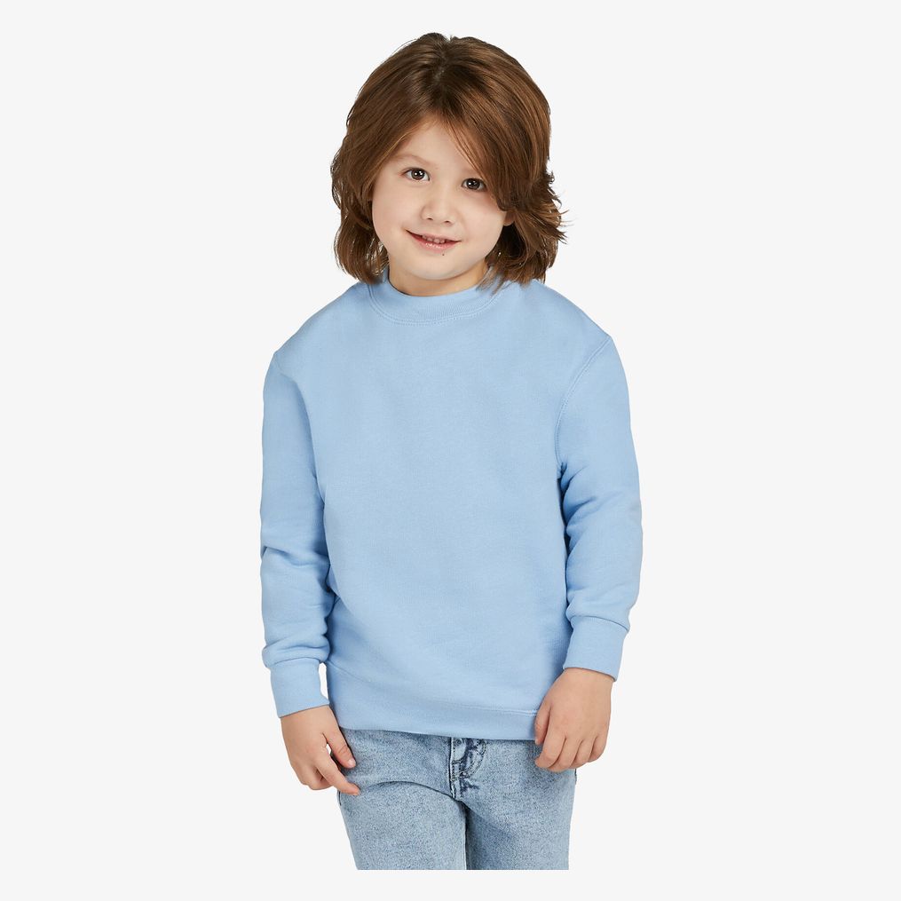 Le sweatshirt à encolure ras du cou pour enfants est conçu avec une coupe classique et des finitions en bord-côte au col, poignets et ourlet. Il présente un intérieur brossé, des manches set-in et des coutures latérales.