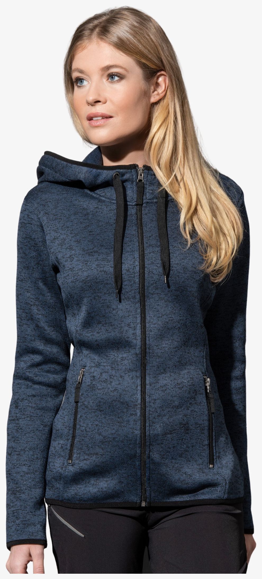Tricot chic et choc : la veste polaire maille tricotée haute gamme pour femmes avec capuche chaude et fermetures éclair contrastantes séduit par son effet chiné moderne. L'intérieur gratté apporte un supplément de chaleur. matériau tricoté chaud et élastique, molleton gratté à l'intérieur, pas d'étiquette de marque dans le cou. matière chaude, élastique et robuste, effet tricoté haut de gamme, dessus en tricot, molleton gratté à l'intérieur, polaire avec traitement anti-boulochage, capuche style plongeur, large cordon contrasté, œillets en métal pour le cordon (sans nickel), 2 poches latérales avec zip contrasté avec curseur en tissu, zip contrasté avec curseur en tissu, bande élastique contrastée à la base de la capuche, des manches et bord, bande à chevrons contrastée au niveau du col, coutures latérales avec bandes avant, petite étiquette de taille dans le cou, étiquette d'entretien dans la couture latérale, lavable à 40°C. Composition : 100% polyester; polaire tricoté avec traitement anti-boulochage. Grammage : 280g/m²
