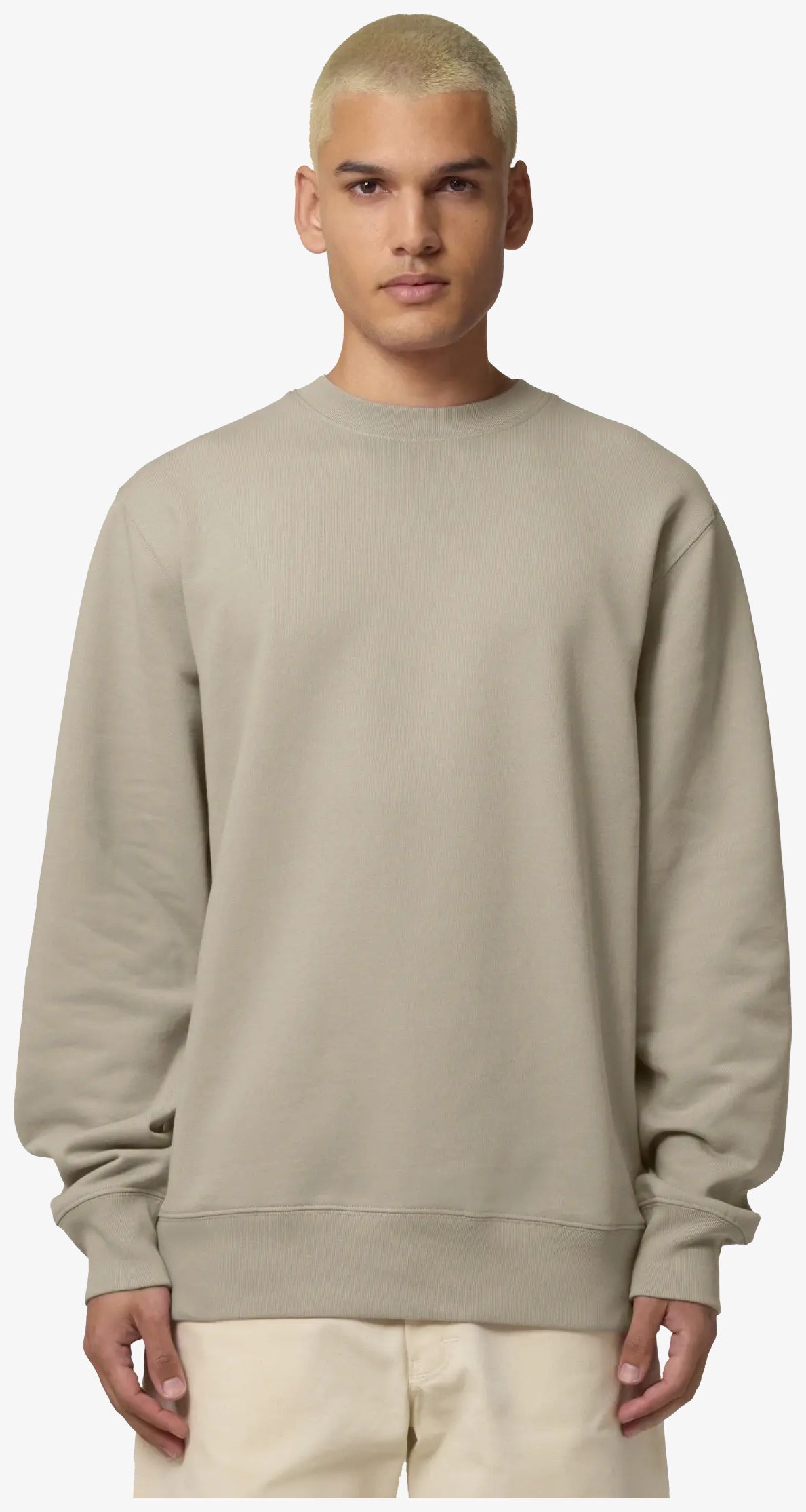 Sweat-shirt iconique unisexe à col rond. Manches montées. Côtes 1x1 au col, au poignet et à l'ourlet. Bande de nuque intérieure en chevrons. Demi-lune dans la matière principale à l'arrière du cou. Surpiqûre simple au col. Surpiqûre à 2 aiguilles centrée sur la couture à l'ourlet, au poignet et à l'emmanchure. Composition : Extérieur molleton brossé, 100 % coton biologique filé à l'anneau, peigné, sauf couleur Heather Haze 80 % coton biologique, 20 % coton recyclé filé à l'anneau, peigné. Tissu lavé. Grammage : 350g/m²