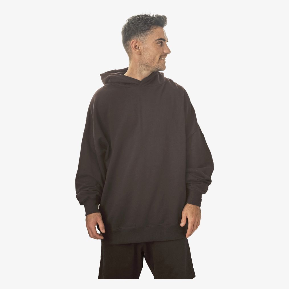 Le sweat à capuche oversize en coton peigné biologique conversion dispose d'une coupe surdimensionnée avec épaules tombantes pour un confort accru. La capuche est doublée et les poignets sont en tricot. Ce modèle est sans étiquette.