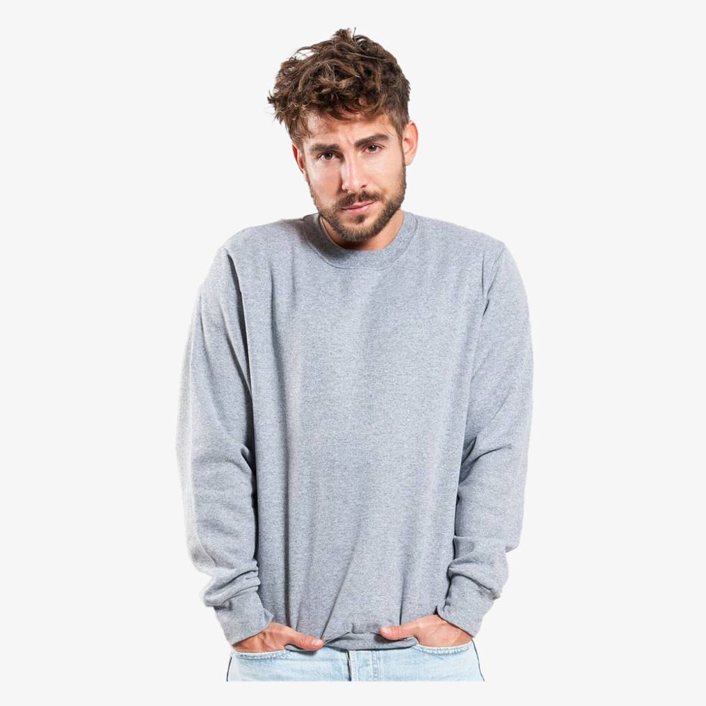 Le sweat col rond est une coupe tubulaire équipée d'un col rond et de poignets taille bord côte. Sa composition associe 70% coton et 30% polyester.
