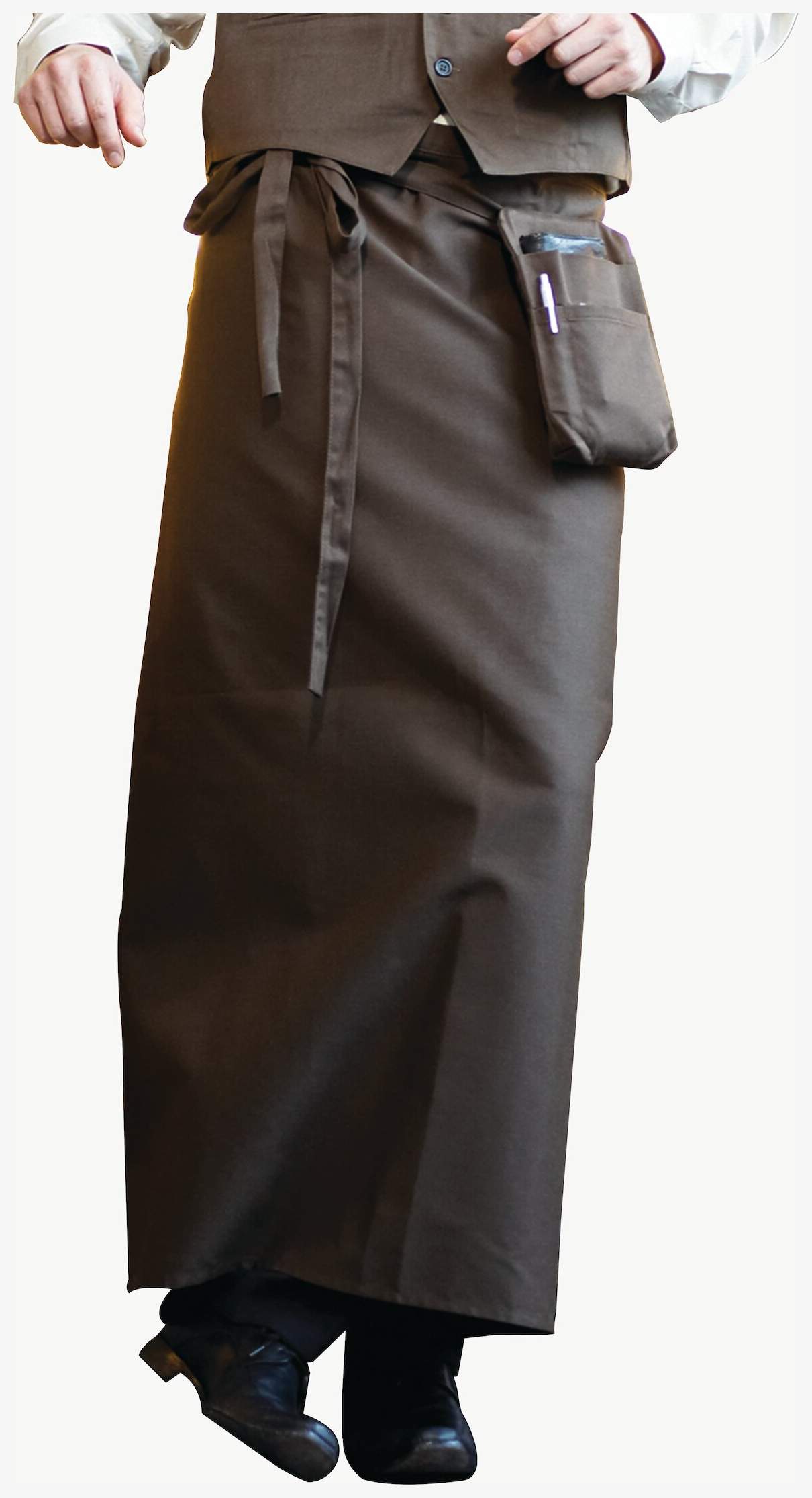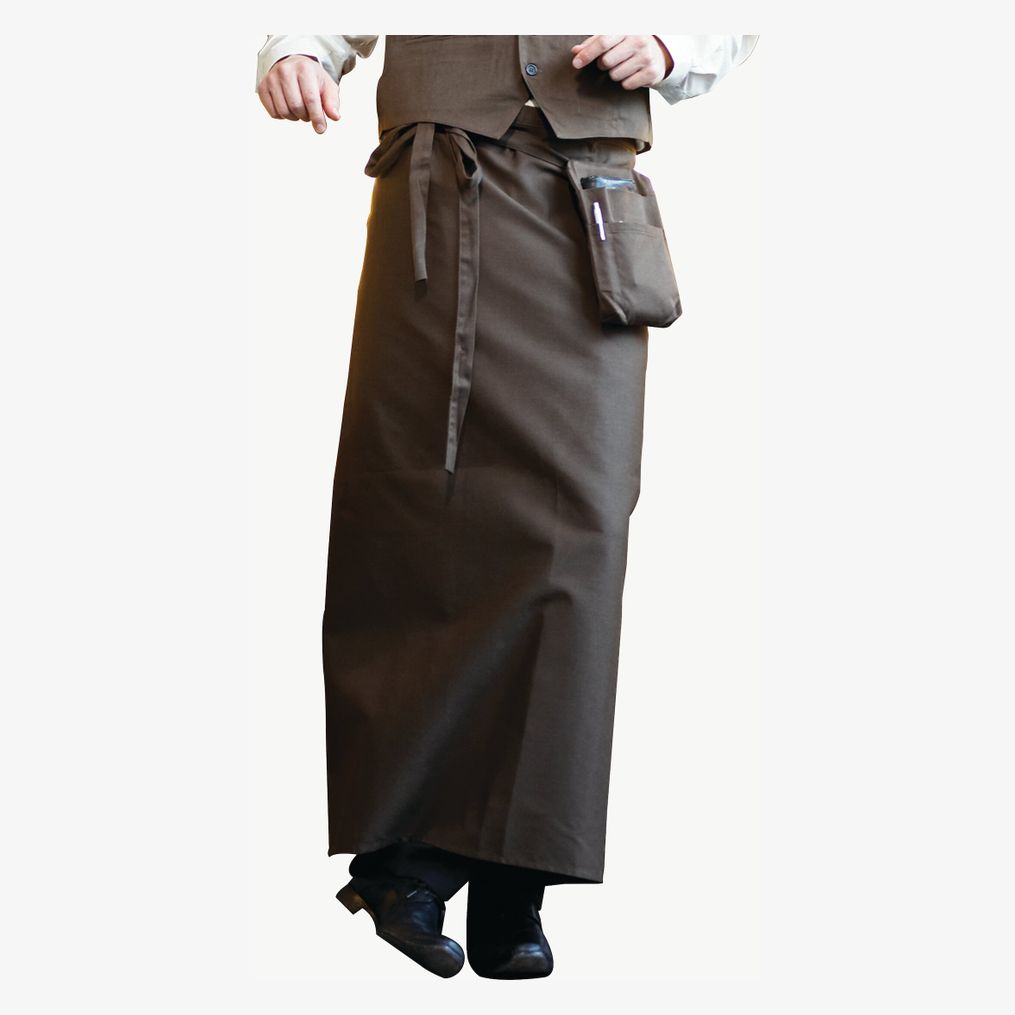 Le tablier 100 x 100 cm est fabriqué en 65% polyester et 35% coton. Il comprend une sangle de maintien avec réglage au cou.