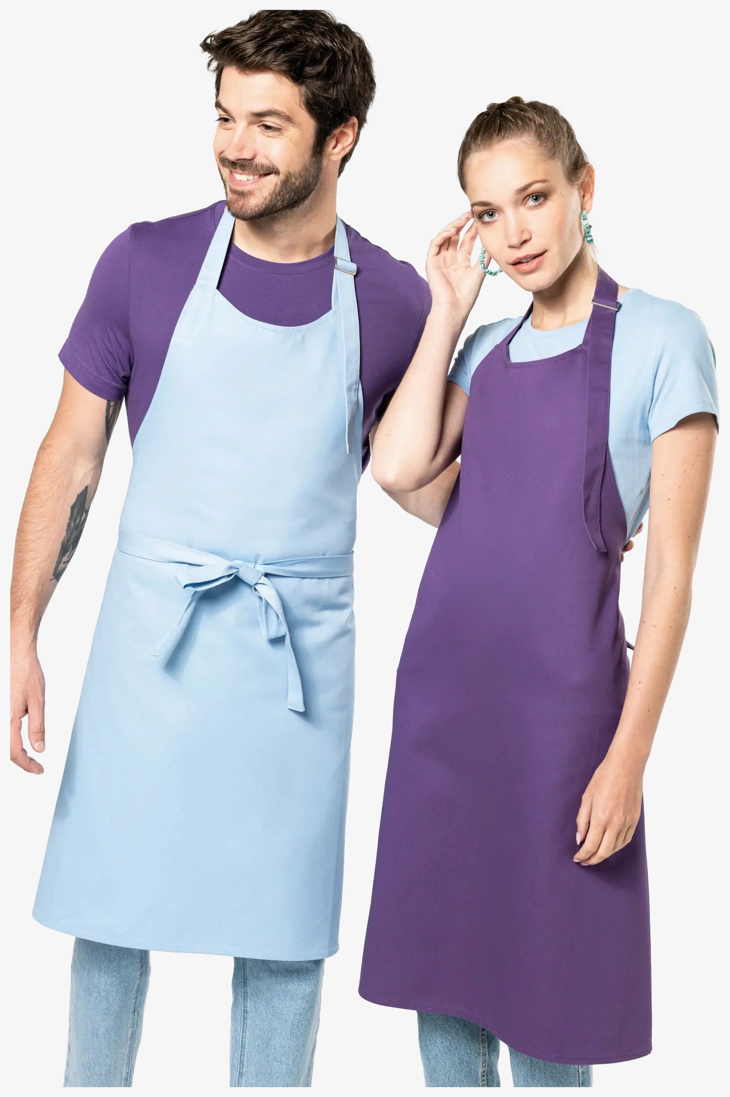 Le tablier coton sans poche est composé de 100% coton avec un réglage par boucle métal au niveau du cou. Il mesure 90 cm de hauteur et 76 cm de largeur. Un traitement spécial a été appliqué sur les coloris Denim, générant des variations de couleur entre chaque pièce.