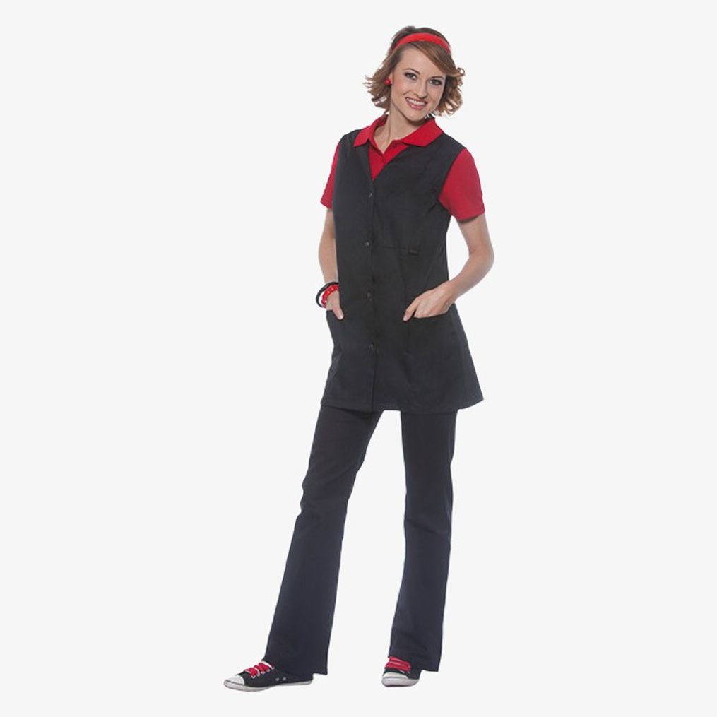 Le tablier Worksmock Sara est conçu en polyester et coton avec une coupe ample pour le confort et plusieurs poches fonctionnelles. La longueur dos est d'environ 82 cm.