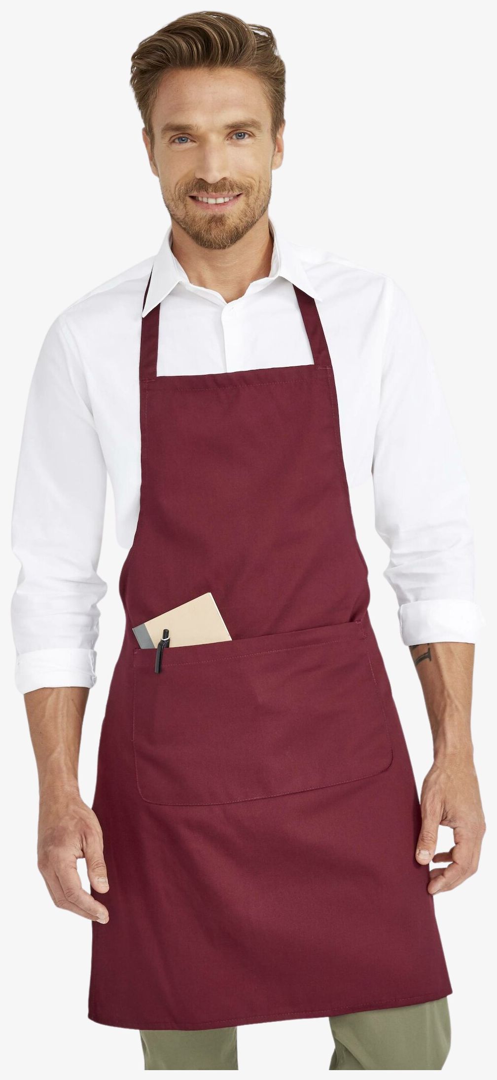 Tablier long avec poche. Grande poche devant. 65% polyester - 35% coton. Grammage : 190g/m²