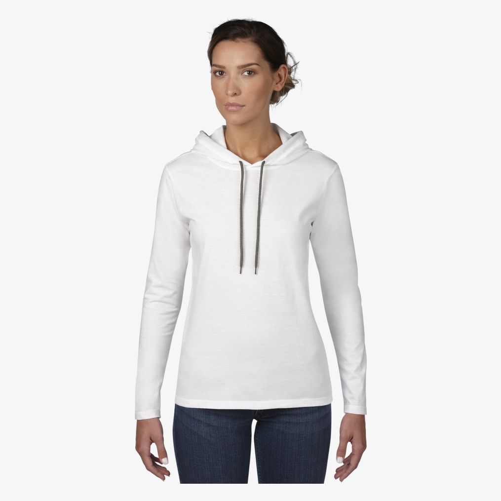 Tee-shirt à capuche ·150 g/m² ·100% coton ringspun prérétréci ·couleurs heather: 40% coton, 60% polyester ·capuche de même couleur avec cordon contrasté ·bande de propreté ·étiquette détachable ·double piqûre au col, manches et base ·silhouette semi-cintrée avec coutures latérales Grammage : 150g/m²
