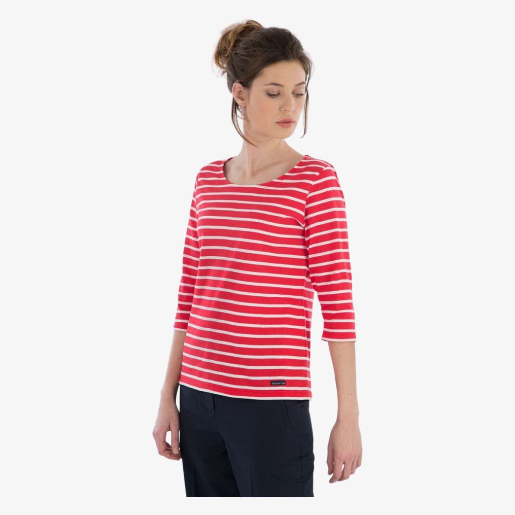 La marinière Armor Lux à manches 3/4 pour femme est le choix idéal pour rehausser votre garde-robe. Fabriquée en 100% jersey de coton peigné, cette pièce légère offre un confort et une bonne respirabilité, sans compromis sur le style. L'encolure bateau classique, associée à une longueur de manche moderne, fait de ce vêtement un choix facile pour toutes les occasions et toutes les saisons. Grammage : 135g/m²