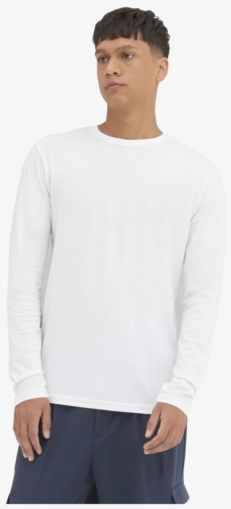 Le tee-shirt manches longues Erawan est confectionné en jersey simple 100% coton biologique. Il présente un col côtelé et des surpiqûres doubles aux bords des manches pour une finition soignée. La bande de recouvrement à l'arrière du col ajoute un détail de construction.