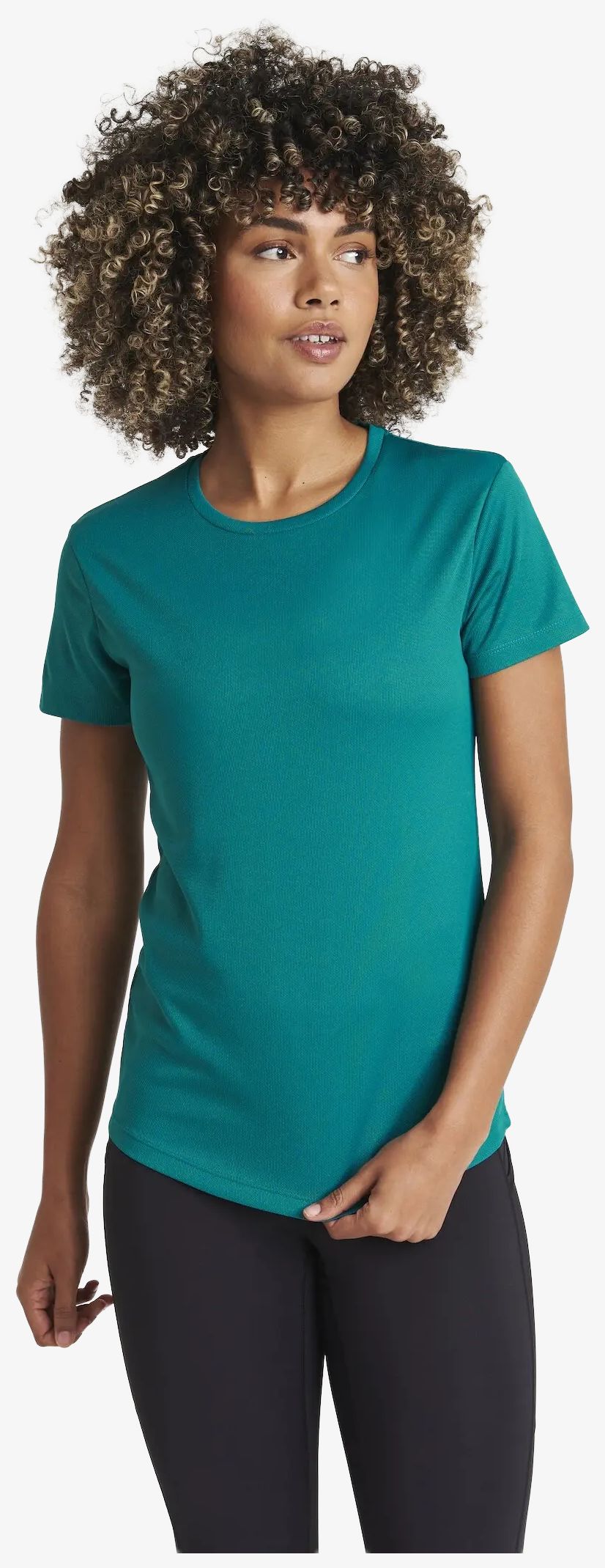 Le Women's Cool T est un tee-shirt léger conçu en polyester. Il intègre des manches montées et un col rond. Sa structure inclut un bord arrondi dans le dos et une bande propreté dans la continuité du tissu.