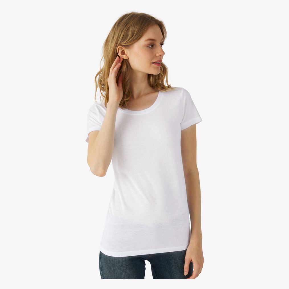 T-shirt féminin 100 % en polyester offrant une sensation coton de très haute qualité, Idéal pour la sublimation. Sa tenue est parfaite et il présente un col rond, des manches courtes et des coutures latérales. Un t-shirt polyester extrêmement polyvalent !