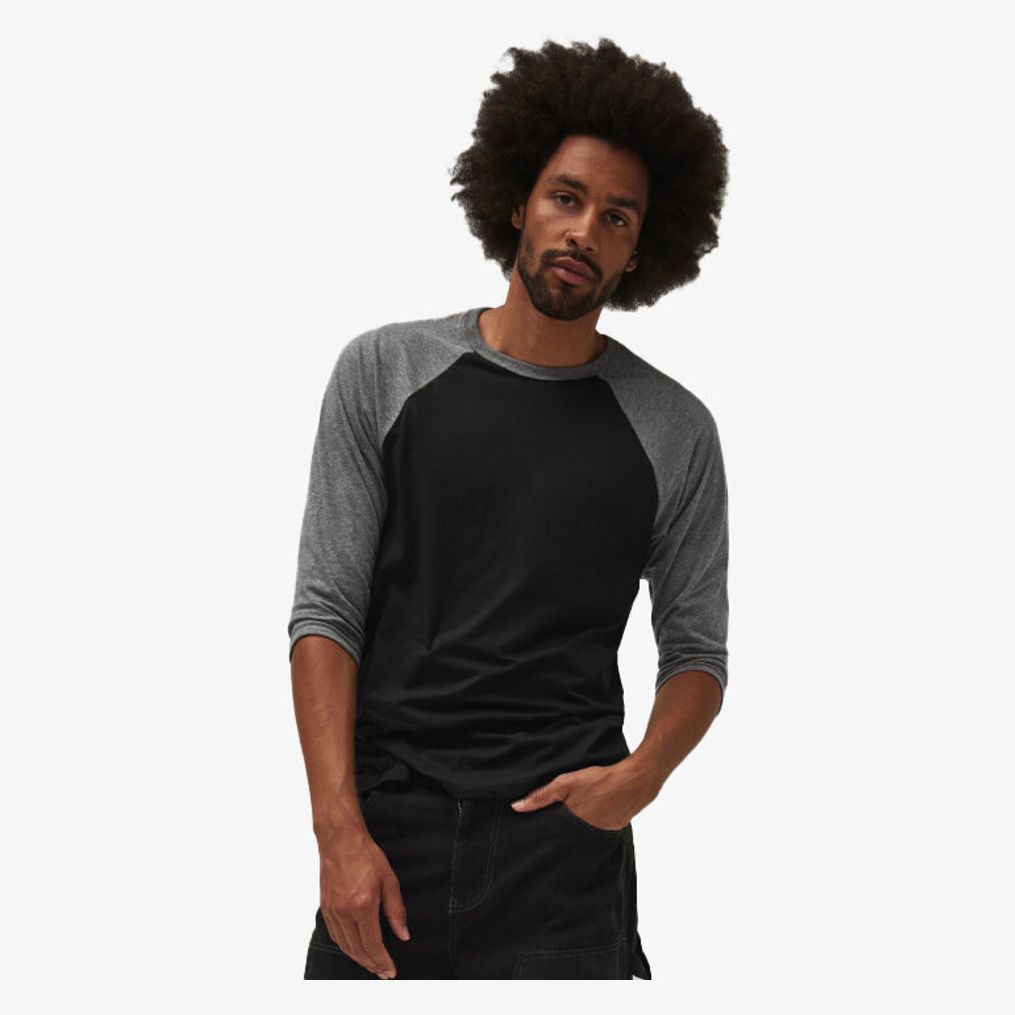 Le Unisex 3/4 sleeve baseball tee est un tee-shirt unisexe à manches raglan 3/4, avec coutures latérales et étiquette détachable. Modèle pré-rétréci. Composition : 52% coton peigné ringspun airlume, 48% polyester. Exceptions : Triblend 25% coton, 50% polyester, 25% rayon ; Neon 52% coton, 48% polyester ; Marble 9% coton, 91% polyester.