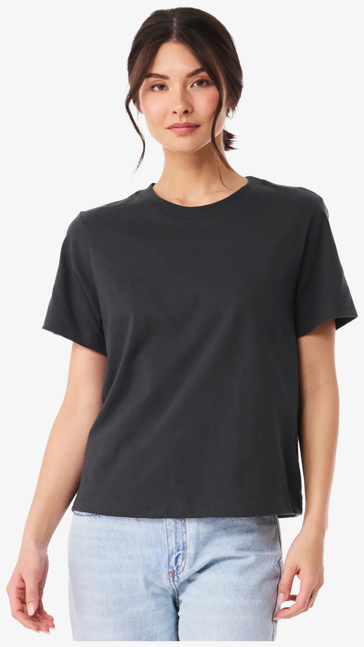 Tee-shirt femme lourd boxy. Coutures latérales. Coupe carrée. Manches montées. Doubles surpiqûres au col. Longueur moyenne. Jersey. Composition : 100 % coton peigné et ringspun Airlume, sauf couleur Athletic Heather ( 90 % coton peigné ringspun Airlume, 10 % polyester ). Grammage : 205g/m²