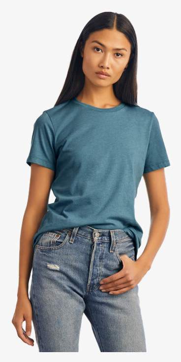 Le women's relaxed heather cvc short sleeve tee est confectionné en mélange de coton peigné ringspun airlume et polyester avec une coupe décontractée et des coutures latérales. L'étiquette est détachable et le tissu est pré-rétréci.
