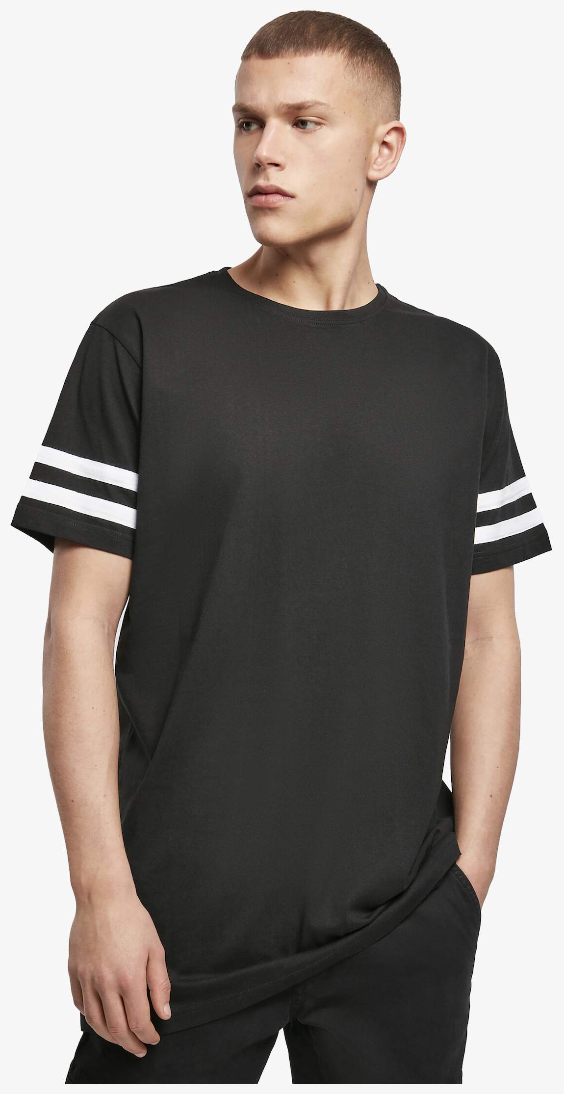 Le Stripe Jersey Tee est un tee-shirt homme en jersey simple avec manches montées et étiquette taille neutre sans marque. Il présente une possibilité d'impression sur le cou. Sa composition varie selon la couleur.