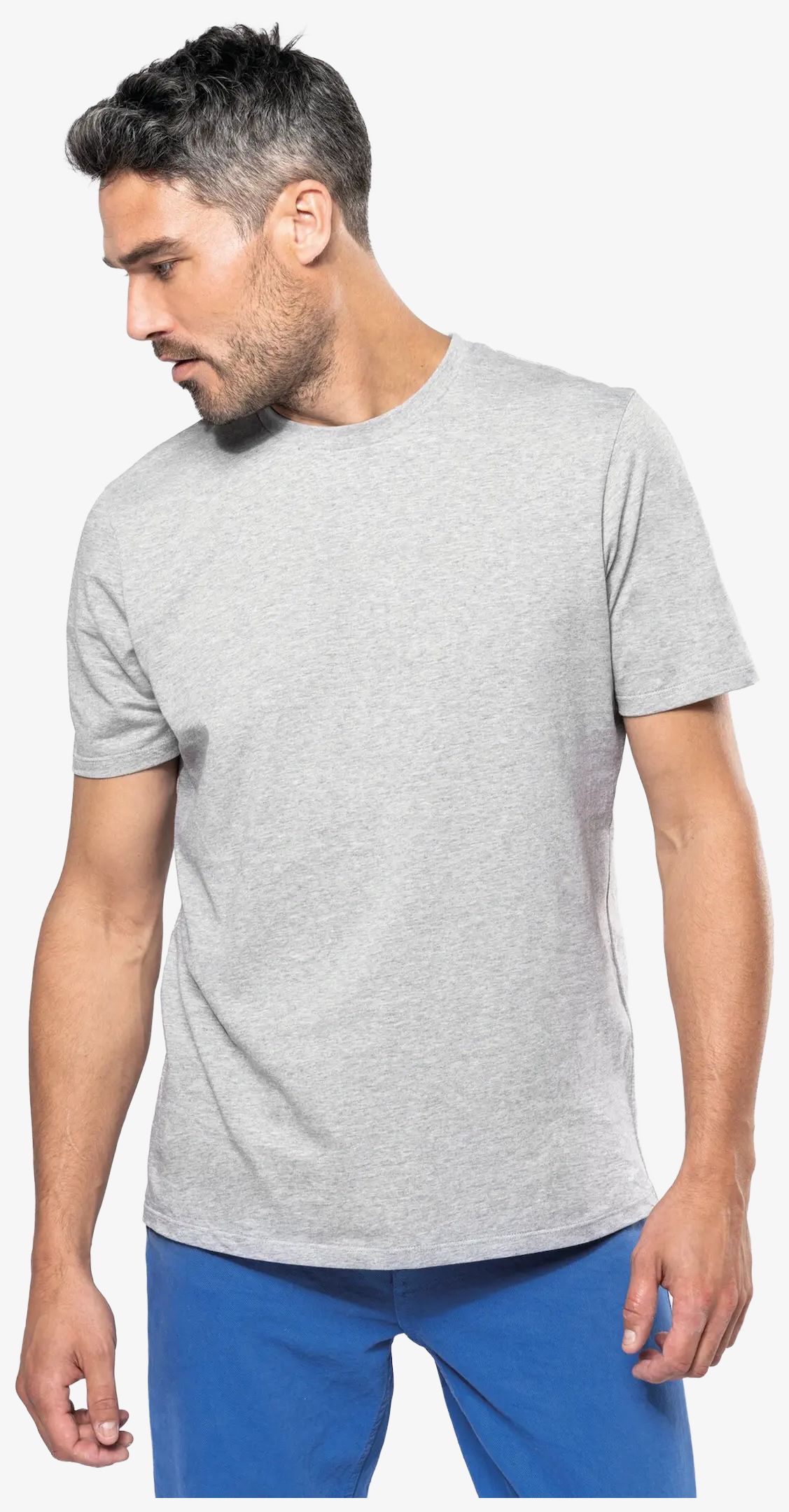 Le tee-shirt col rond manches courtes unisexe est confectionné en coton peigné 100%. Il présente une coupe ajustée et un tissu jersey. L'encolure ronde est munie d'une bande propreté ton sur ton et la couture épaule est renforcée par une bande siliconée. Les bas des manches et du vêtement sont finis par un ourlet à double surpiqûres.