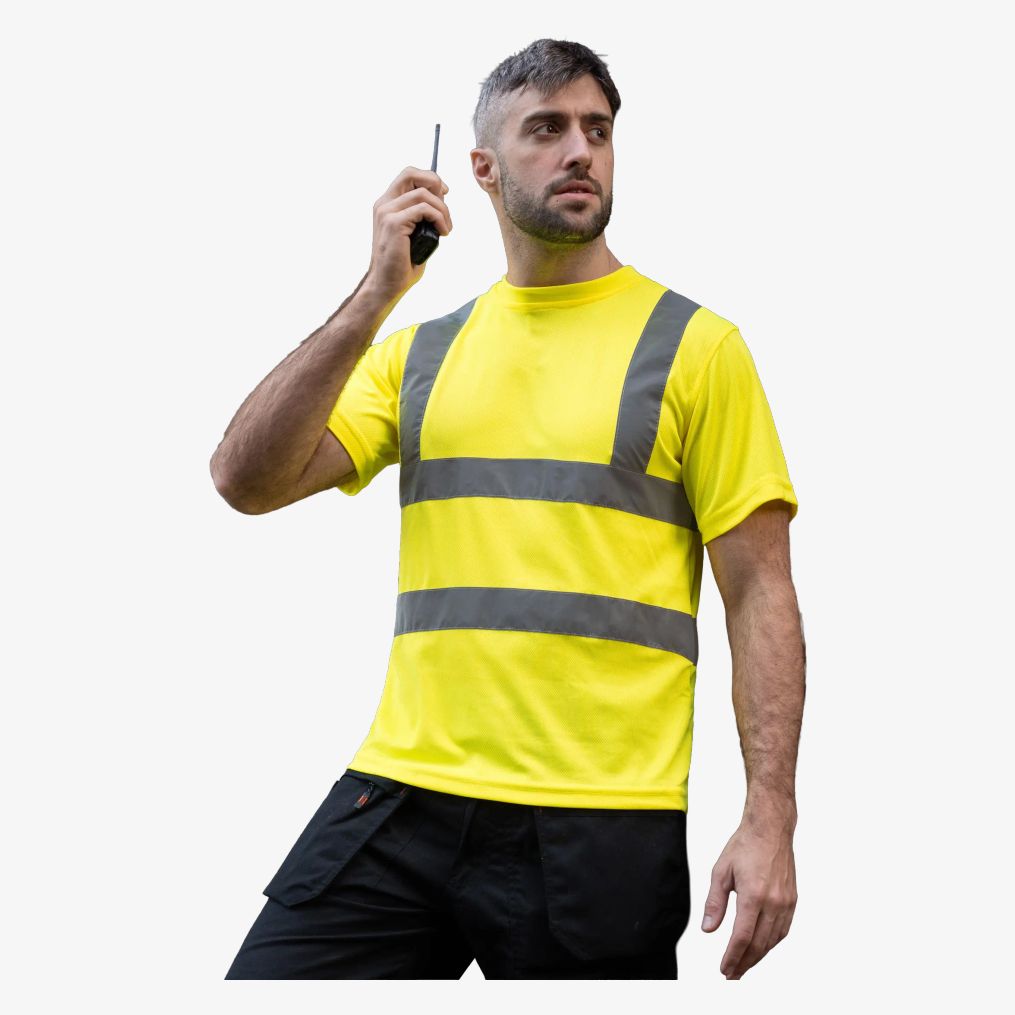 Le Hi vis t Shirt Cordoba est un tee-shirt sécurité respirant, conçu pour une visibilité renforcée grâce à ses bandes réfléchissantes disposées à l'horizontale et à la verticale. Sa matière légère convient à un usage professionnel ou quotidien en environnement nécessitant un repérage visuel.
