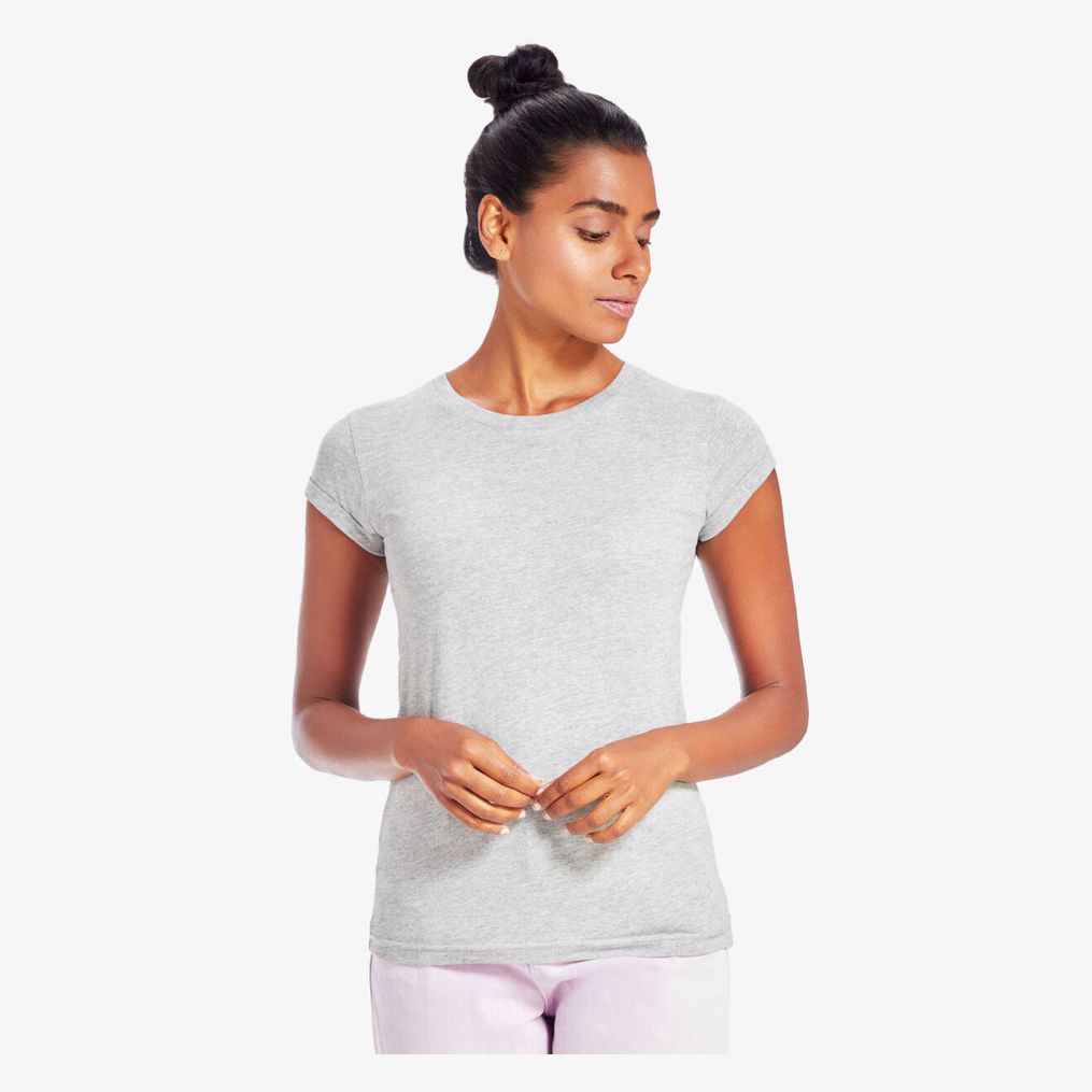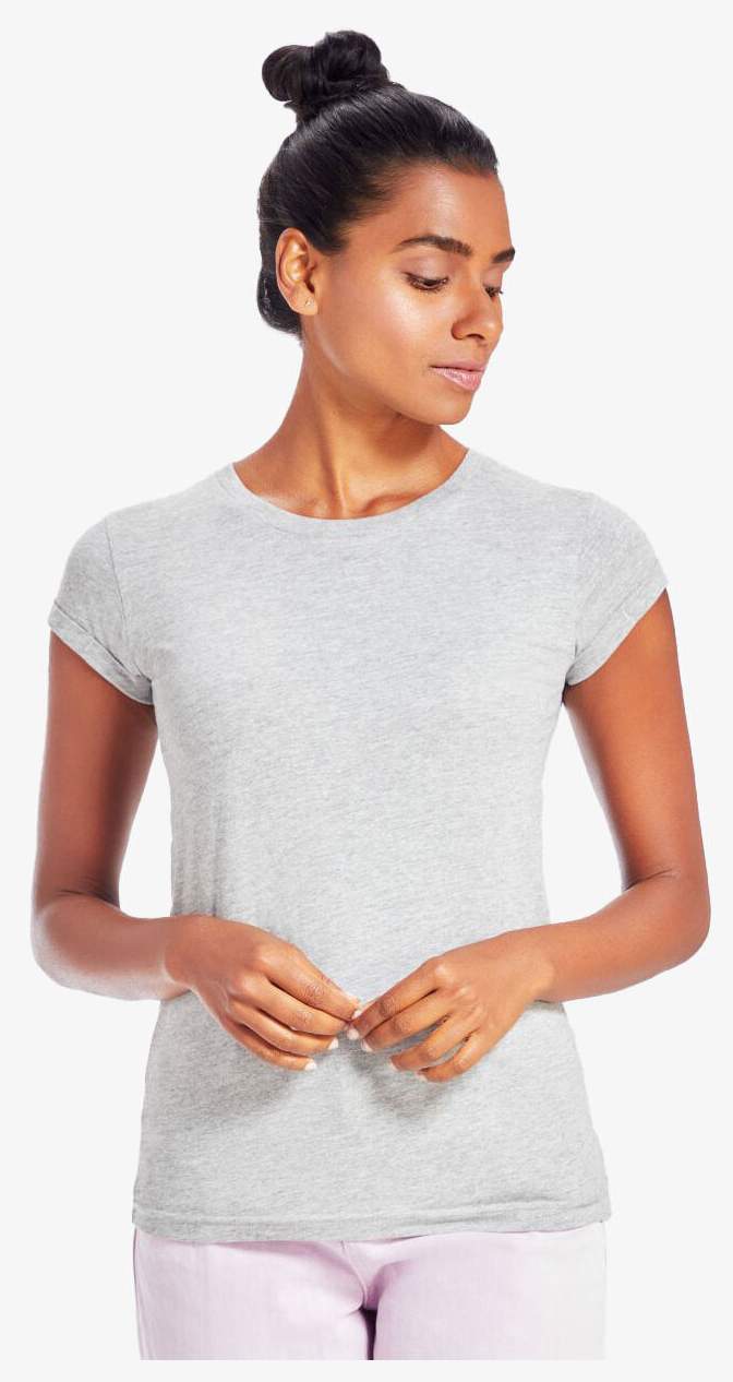 Le Women's roll Sleeve T est un tee-shirt femme unicolore à col rond, avec coupe moderne et longueur plus longue. Manches retroussées fixées par un point couture. Matière principale 100% coton; Charcoal grey melange 60% coton 40% polyester; Heather grey melange 85% coton 15% viscose.