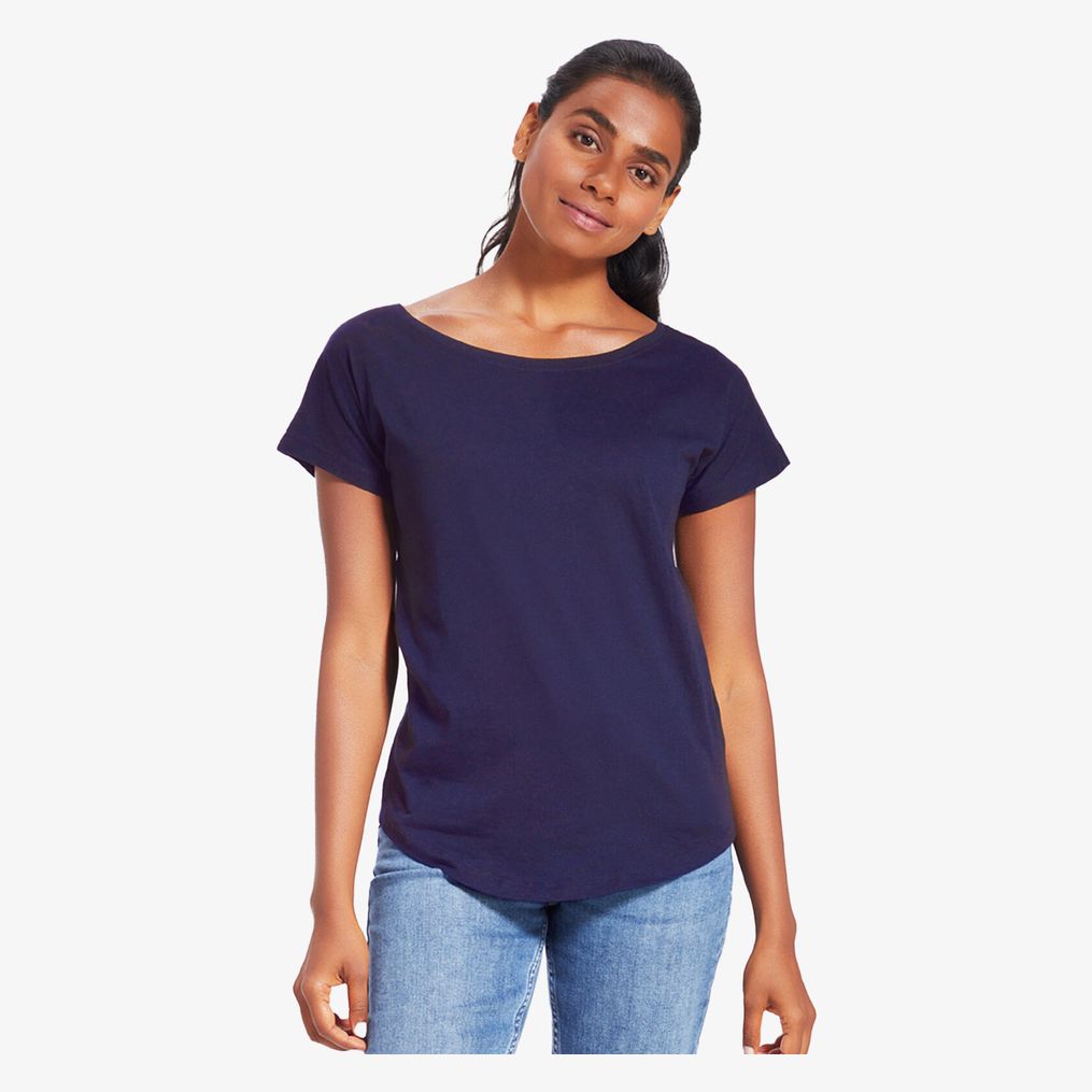 Le Women's loose fit T est un tee-shirt unicolore pour femme en coton bio ou conversion ringspun peigné avec col rond, jersey simple, coupe ajustée et ourlet arrondi. Les manches sont sans coutures aux épaules et il comporte une étiquette détachable.