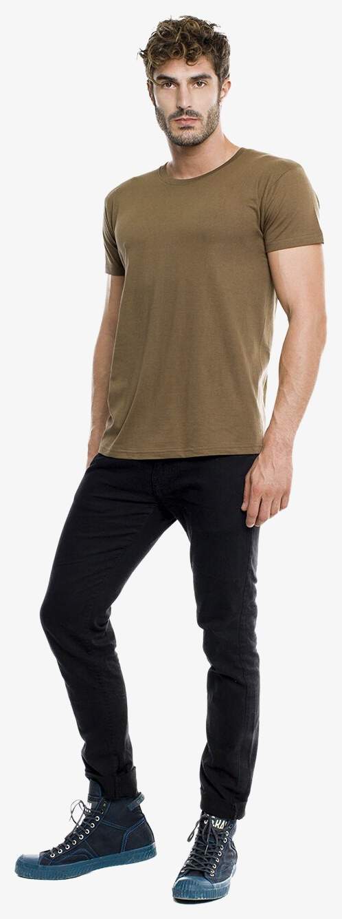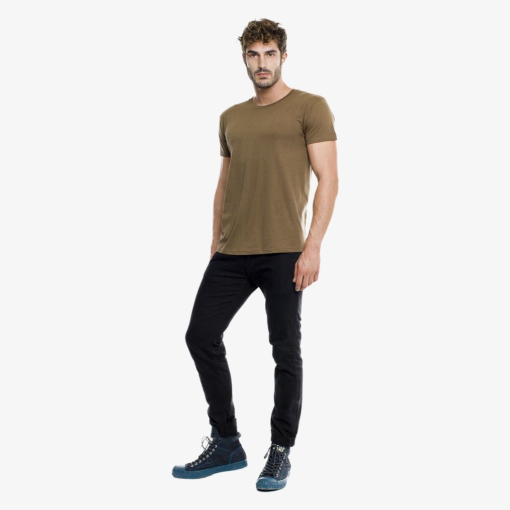 Le tee-shirt K1 est en coton semi-peigné avec un col rond côtelé skinny et une couleur assortie. Il présente des coutures latérales et un ajustement moyen.