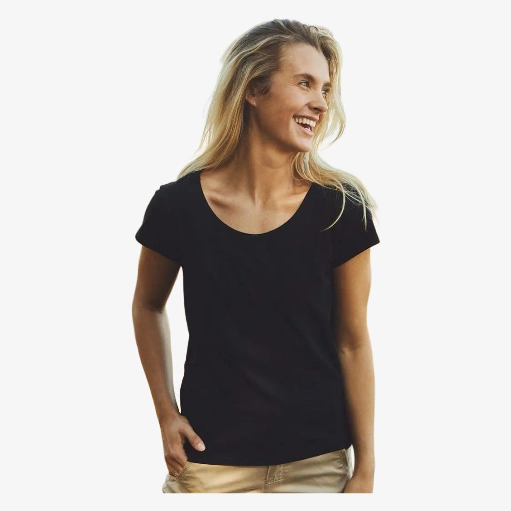 Le T Shirt Loose fit est un tee-shirt femme à manches courtes avec coupe ample, col évasé et col rond. La bande de propreté au col apporte une finition nette et un porté confortable.