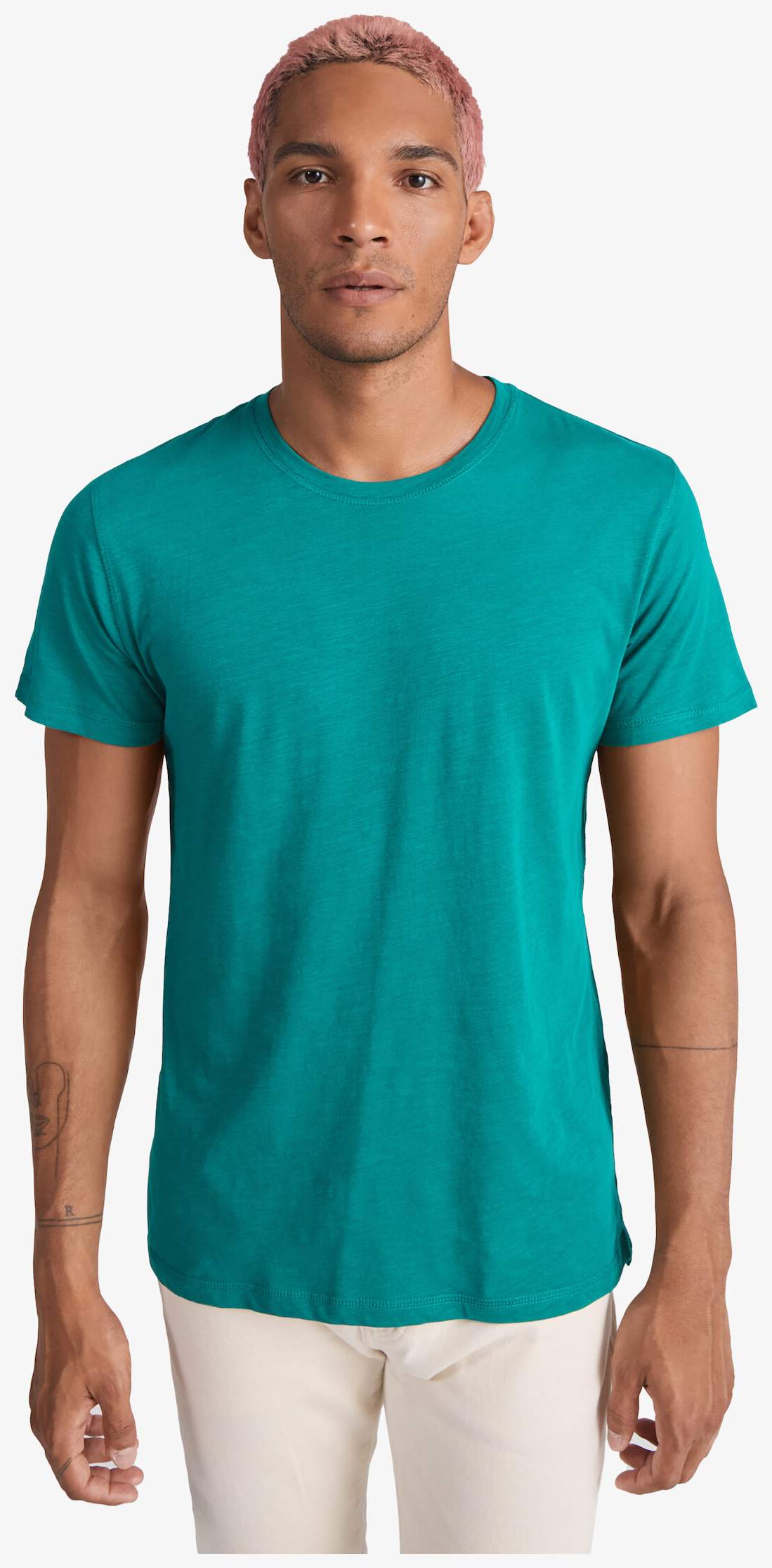 Le tee-shirt Terrier à manches courtes est conçu en tissu chiné incliné avec col rond et overlock décoratif. Il comporte une bande propreté intérieure contrastée d'épaule à épaule, des coutures latérales avec overlock décoratif et un bas avec ouvertures latérales. Le dos est légèrement plus long que le devant.