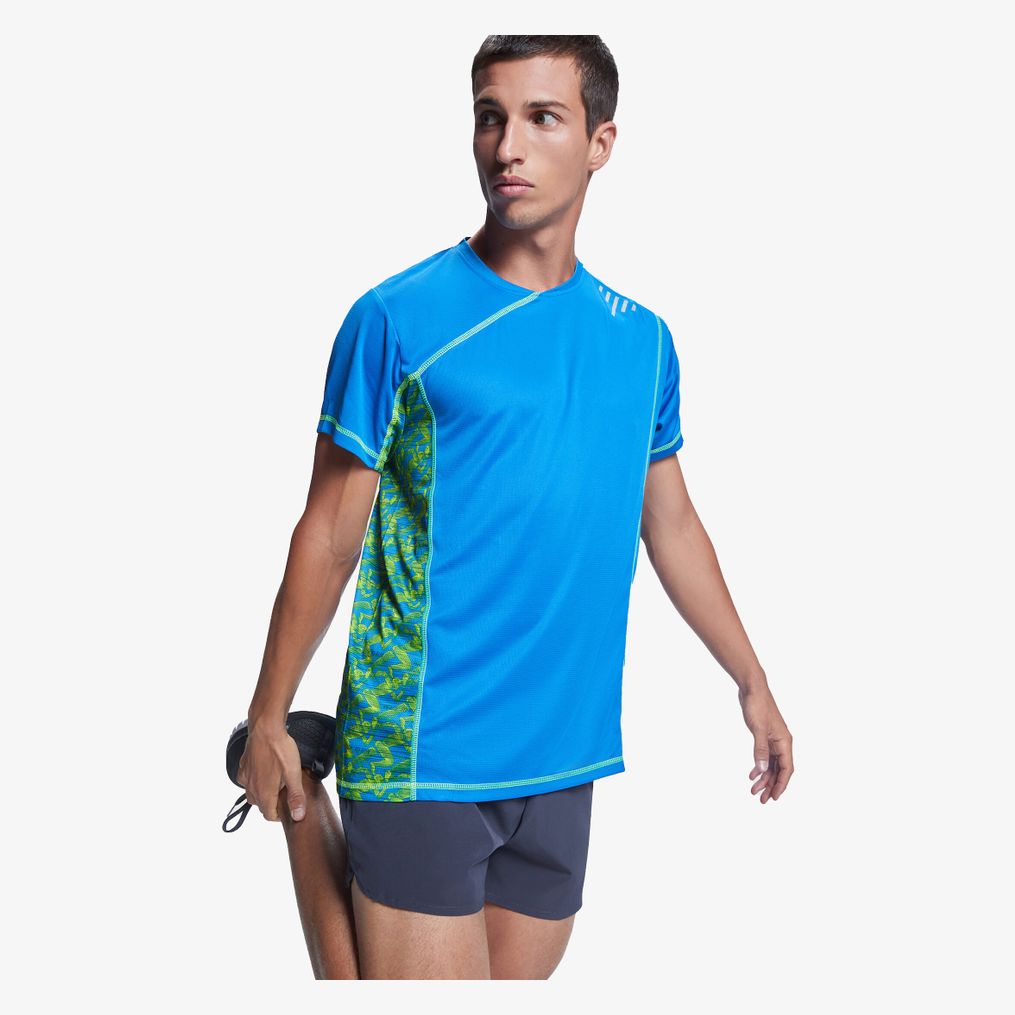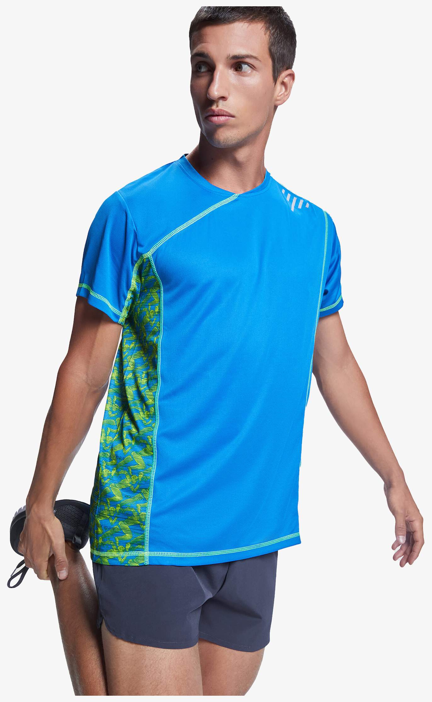 Le tee-shirt Sochi se compose de polyester recyclé et polyester en interlock. Il comprend des manches raglan, des empiècements imprimés, un dos allongé et un surpiquage fluo sauf pour le coloris blanc. Une étiquette ECO est apposée sur la manche.