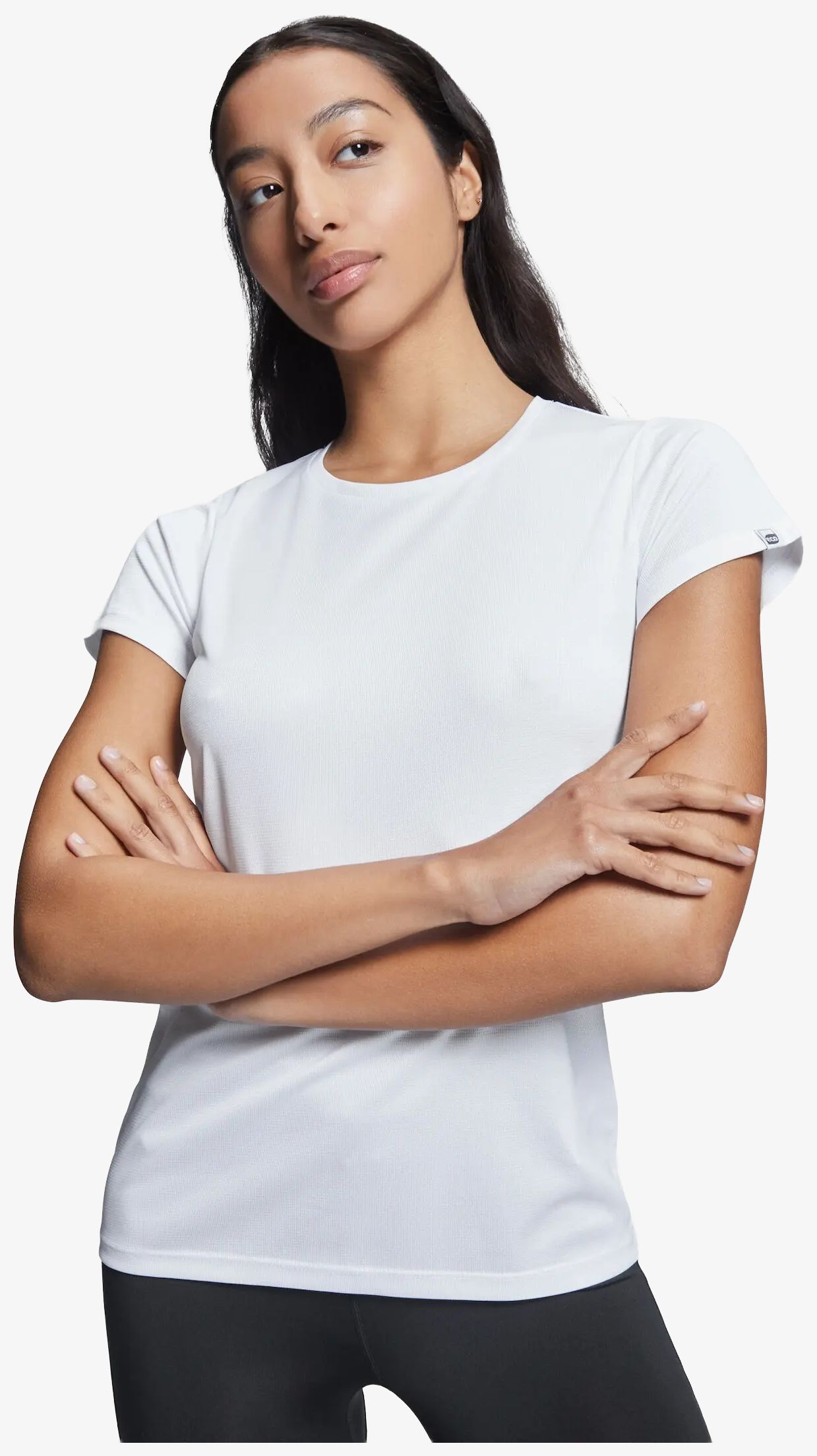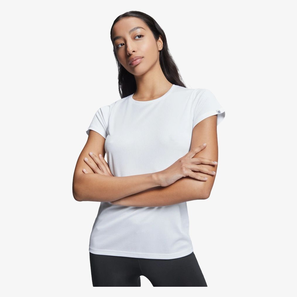 Le tee-shirt technique Imola Woman à manches courtes est conçu en tissu polyester recyclé CONTROL DRY. Il présente un col rond avec surpiqûres assorties et une étiquette amovible ECO sur la manche.