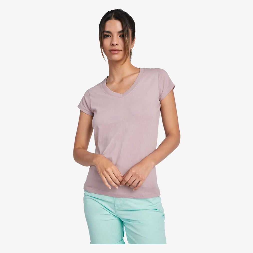Le Victoria tee-shirt femme à manches courtes avec col V en côte 1x1 et coupe près du corps. Coutures latérales et étiquette détachable.