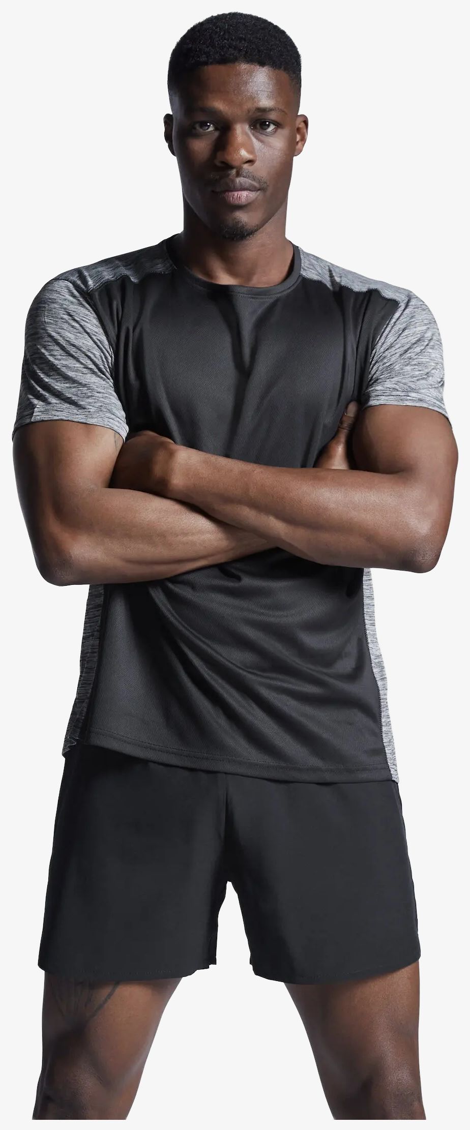 Le tee-shirt technique Zolder manches courtes dispose d'un col rond et d'un combiné dos, épaules et manches avec deux tissus polyester. Le tissu principal en face avant est en bird's eye, tandis que la face arrière utilise un tissu space dye. Le dos est légèrement plus long que le devant, assurant une meilleure couverture. Sa conception favorise la respirabilité et un séchage rapide.