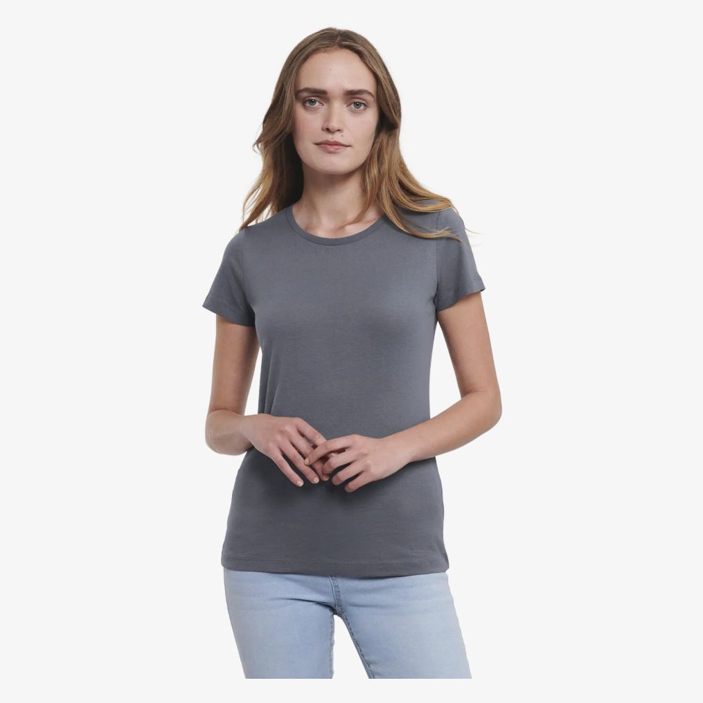 Le Pure Organic T femme est un tee-shirt en coton organique peigné ringspun avec surface lisse et coupe moderne. Il comprend une bande élastique élasthanne et une bande propreté d'épaule à épaule. La conception sans étiquette améliore le confort. Coloris light Oxford en 97% coton et 3% viscose.