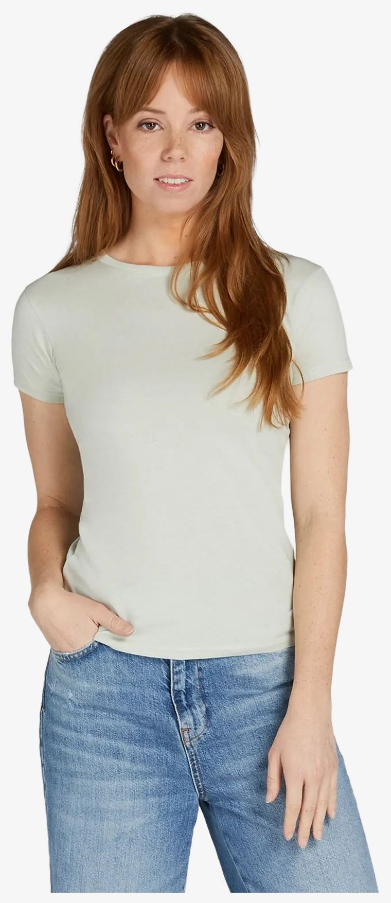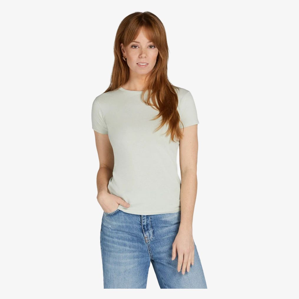 Le tee-shirt coton filé Signature Tagless Tee Women présente une coupe contemporaine avec une surface lisse et un col côtelé ras du cou. La bande de propreté est contrastée sauf pour les coloris blanc et gris cendré où elle est Oxford clair. Le col ne comporte pas d'étiquette marque. Les poignets et l'ourlet du bas sont réalisés avec une double couture. Les coutures latérales assurent la structure du vêtement.