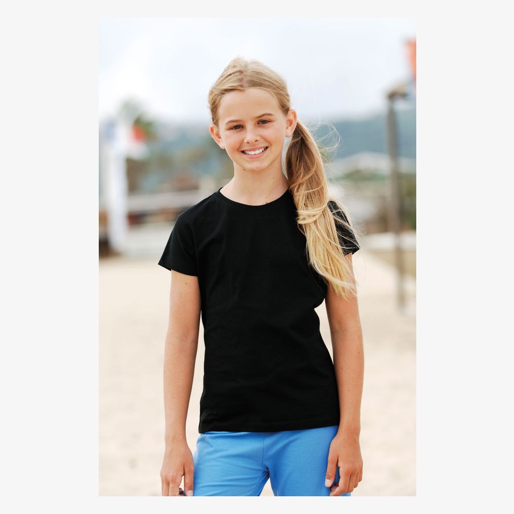 96% coton/4% élasthanne. Doux et extensible. Tee-shirt fille. Grammage : 190g/m²