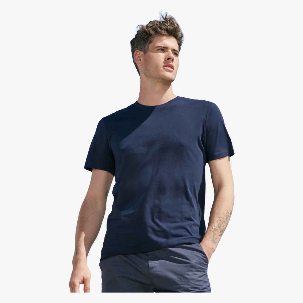 Le tee-shirt Odyssey est un vêtement unisexe fabriqué à partir de matériaux recyclés. Il présente un col rond avec finition bord côte et une bande de propreté au col. Les manches sont courtes et le modèle est coupé cousu.