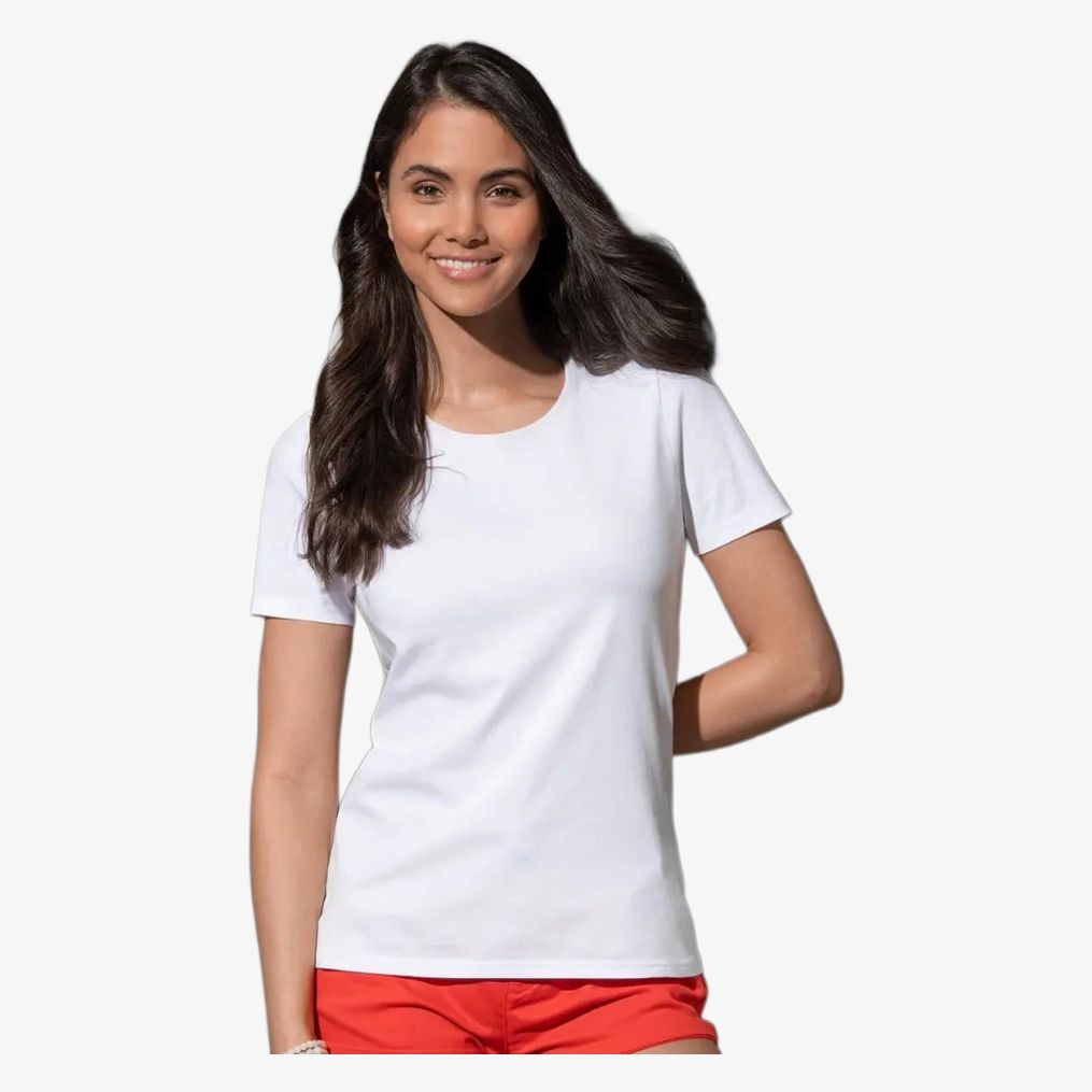 Le Lux Fitted est un tee-shirt à col rond destiné aux femmes. Ce modèle est conçu en coton peigné filé à l'anneau doux avec des coutures latérales qui suivent la silhouette féminine.